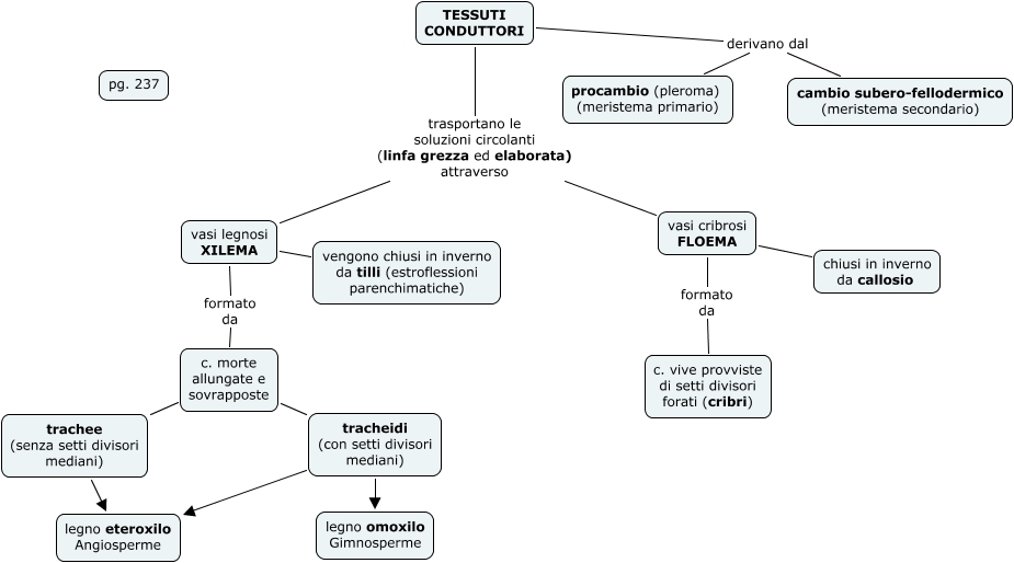 Questa Cmap, creata con IHMC CmapTools, contiene informazioni relative a: 11.2 Tessuti conduttori, c. morte allungate e sovrapposte trachee (senza setti divisori mediani), trachee (senza setti divisori mediani) legno eteroxilo Angiosperme, TESSUTI CONDUTTORI trasportano le soluzioni circolanti (linfa grezza ed elaborata) attraverso vasi legnosi XILEMA, TESSUTI CONDUTTORI trasportano le soluzioni circolanti (linfa grezza ed elaborata) attraverso vasi cribrosi FLOEMA, TESSUTI CONDUTTORI derivano dal cambio subero-fellodermico (meristema secondario), tracheidi (con setti divisori mediani) legno eteroxilo Angiosperme, TESSUTI CONDUTTORI derivano dal procambio (pleroma) (meristema primario), tracheidi (con setti divisori mediani) legno omoxilo Gimnosperme, vasi cribrosi FLOEMA formato da c. vive provviste di setti divisori forati (cribri), vasi legnosi XILEMA vengono chiusi in inverno da tilli (estroflessioni parenchimatiche), vasi legnosi XILEMA formato da c. morte allungate e sovrapposte, c. morte allungate e sovrapposte tracheidi (con setti divisori mediani), vasi cribrosi FLOEMA chiusi in inverno da callosio