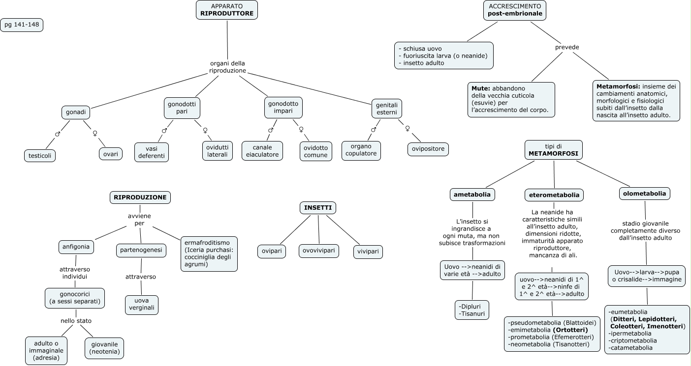 Questa Cmap, creata con IHMC CmapTools, contiene informazioni relative a: 8 Apparato riproduttore, genitali esterni organi della riproduzione gonodotti pari, gonodotti pari ♀ ovidutti laterali, gonadi organi della riproduzione gonodotto impari, gonadi ♀ ovari, gonadi organi della riproduzione gonodotti pari, olometabolia stadio giovanile completamente diverso dall’insetto adulto Uovo-->larva-->pupa o crisalide-->immagine, APPARATO RIPRODUTTORE organi della riproduzione gonodotto impari, ACCRESCIMENTO post-embrionale - schiusa uovo - fuoriuscita larva (o neanide) - insetto adulto, Uovo-->larva-->pupa o crisalide-->immagine -eumetabolia (Ditteri, Lepidotteri, Coleotteri, Imenotteri) -ipermetabolia -criptometabolia -catametabolia, gonodotti pari ♂ vasi deferenti, tipi di METAMORFOSI olometabolia, APPARATO RIPRODUTTORE organi della riproduzione gonodotti pari, tipi di METAMORFOSI ametabolia, gonocorici (a sessi separati) nello stato giovanile (neotenia), gonadi ♂ testicoli, genitali esterni organi della riproduzione gonodotto impari, genitali esterni ♀ ovipositore, INSETTI ovovivipari, anfigonia attraverso individui gonocorici (a sessi separati), ACCRESCIMENTO post-embrionale prevede Metamorfosi: insieme dei cambiamenti anatomici, morfologici e fisiologici subiti dall’insetto dalla nascita all’insetto adulto.