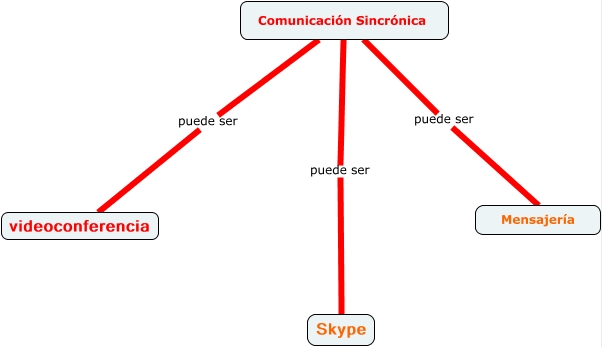Este Cmap, tiene información relacionada con: comunicación, Comunicación Sincrónica puede ser Skype, Comunicación Sincrónica puede ser videoconferencia, Comunicación Sincrónica puede ser Mensajería