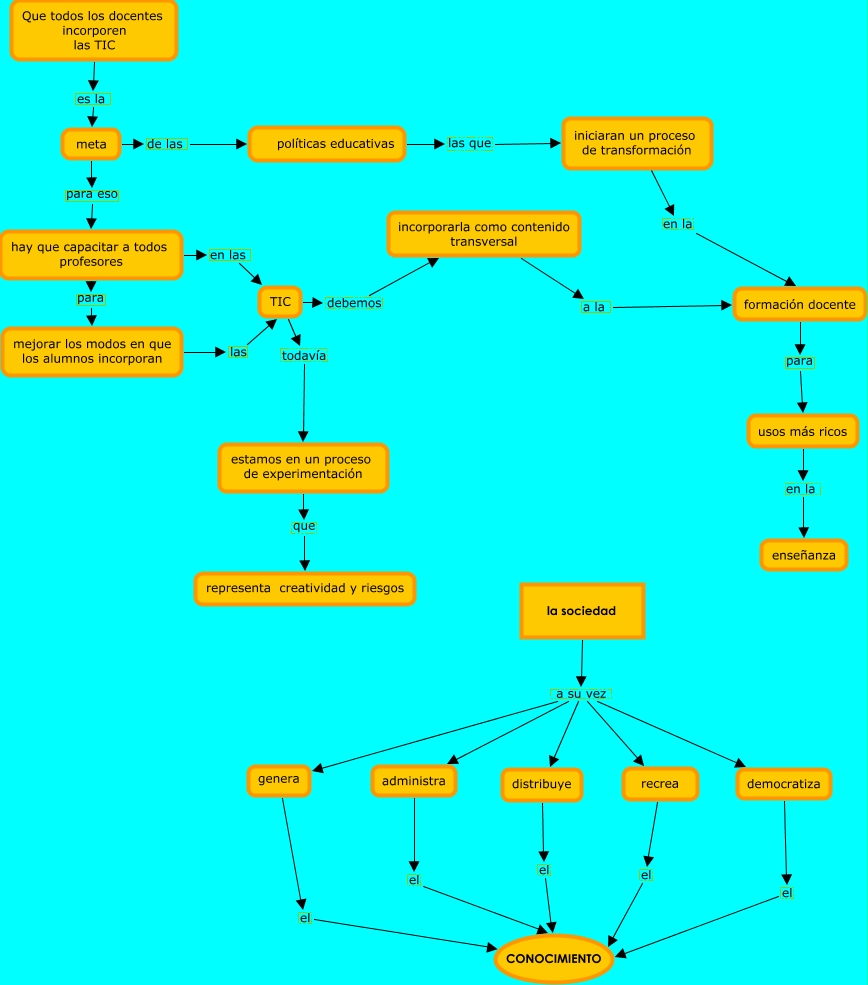 Este Cmap, tiene información relacionada con: QUE TODOS LOS DOCENTES INCORPOREN LAS TIC GRACIELA DE ADROGUE.cmap, meta para eso hay que capacitar a todos profesores, hay que capacitar a todos profesores para mejorar los modos en que los alumnos incorporan, formación docente para usos más ricos, iniciaran un proceso de transformación en la formación docente, TIC todavía estamos en un proceso de experimentación, hay que capacitar a todos profesores en las TIC, la sociedad a su vez distribuye, usos más ricos en la enseñanza, estamos en un proceso de experimentación que representa creatividad y riesgos, incorporarla como contenido transversal a la formación docente, administra el CONOCIMIENTO, TIC debemos incorporarla como contenido transversal, recrea el CONOCIMIENTO, meta de las políticas educativas, la sociedad a su vez genera, democratiza el CONOCIMIENTO, la sociedad a su vez administra, genera el CONOCIMIENTO, la sociedad a su vez recrea, distribuye el CONOCIMIENTO