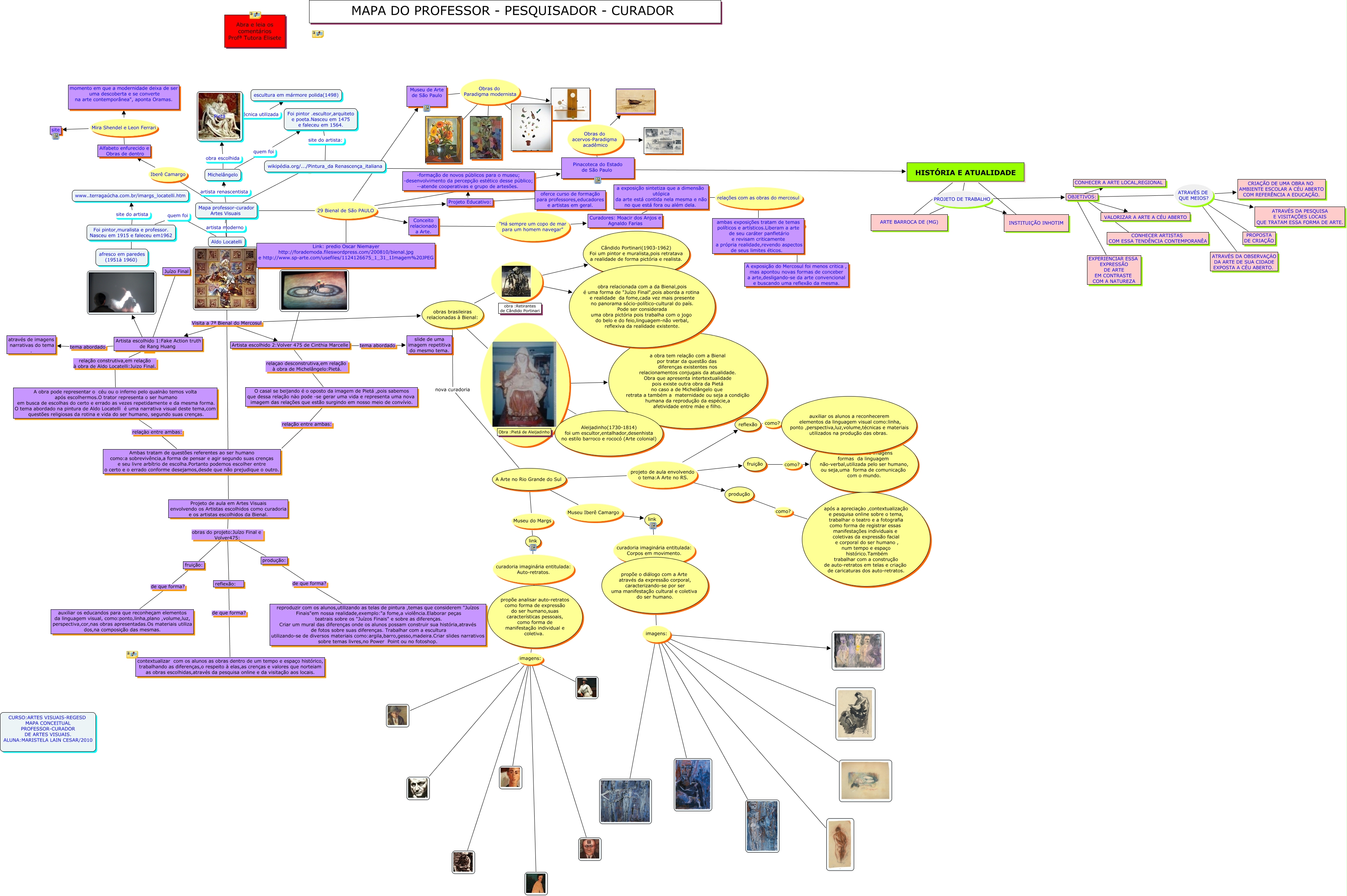 Esse mapa conceitual, produzido no IHMC CmapTools, tem a informação relacionada a: mapa professor -curador seminário 4- Artes Visuais, Aldo Locatelli artista moderno Juízo Final, propõe analisar auto-retratos como forma de expressão do ser humano,suas características pessoais, como forma de manifestação individual e coletiva. imagens:, Pietá técnica utilizada escultura em mármore polida(1498), A Arte no Rio Grande do Sul Museu Iberê Camargo link, propõe o diálogo com a Arte através da expressão corporal, caracterizando-se por ser uma manifestação cultural e coletiva do ser humano. imagens:, propõe analisar auto-retratos como forma de expressão do ser humano,suas características pessoais, como forma de manifestação individual e coletiva. imagens:, Mapa professor-curador Artes Visuais artista renascentista Michelângelo, Aldo Locatelli quem foi Foi pintor,muralista e professor. Nasceu em 1915 e faleceu em1962, Foi pintor,muralista e professor. Nasceu em 1915 e faleceu em1962 site do artista www..terragaúcha.com.br/imargs_locatelli.htm, OBJETIVOS: ???? VALORIZAR A ARTE A CÉU ABERTO, Artista escolhido 2:Volver 475 de Cinthia Marcelle relaçao desconstrutiva,em relação à obra de Michelângelo:Pietá. O casal se beijando é o oposto da imagem de Pietá ,pois sabemos que dessa relação nào pode -se gerar uma vida e representa uma nova imagem das relações que estão surgindo em nosso meio de convívio., fruição como? reconhecer nas imagens formas da linguagem não-verbal,utilizada pelo ser humano, ou seja,uma forma de comunicação com o mundo., produção como? após a apreciaçào ,contextualização e pesquisa online sobre o tema, trabalhar o teatro e a fotografia como forma de registrar essas manifestações individuais e coletivas da expressão facial e corporal do ser humano , num tempo e espaço histórico.Também trabalhar com a construção de auto-retratos em telas e criação de caricaturas dos auto-retratos., Michelângelo quem foi Foi pintor .escultor,arquiteto e poeta.Nasceu em 1475 e faleceu em 1564., produção: de que forma? reproduzir com os alunos,utilizando as telas de pintura ,temas que considerem "Juízos Finais"em nossa realidade,exemplo:"a fome,a violência.Elaborar peças teatrais sobre os "Juízos Finais" e sobre as diferenças. Criar um mural das diferenças onde os alunos possam construir sua história,através de fotos sobre suas diferenças. Trabalhar com a escultura utilizando-se de diversos materiais como:argila,barro,gesso,madeira.Criar slides narrativos sobre temas livres,no Power Point ou no fotoshop., reflexão: de que forma? contextualizar com os alunos as obras dentro de um tempo e espaço histórico, trabalhando as diferenças,o respeito à elas,as crenças e valores que norteiam as obras escolhidas,através da pesquisa online e da visitação aos locais., propõe o diálogo com a Arte através da expressão corporal, caracterizando-se por ser uma manifestação cultural e coletiva do ser humano. imagens:, Museu de Arte de São Paulo Obras do Paradigma modernista, link curadoria imaginária entitulada: Auto-retratos. propõe analisar auto-retratos como forma de expressão do ser humano,suas características pessoais, como forma de manifestação individual e coletiva., Mapa professor-curador Artes Visuais 29 Bienal de São PAULO Conceito relacionado a Arte.