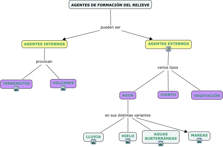 Este Cmap, tiene información relacionada con: Agentes formación del relieve, AGENTES EXTERNOS varios tipos VEGETACIÓN, AGUA en sus distintas variantes MAREAS, AGENTES EXTERNOS varios tipos VIENTO, AGENTES INTERNOS provocan VOLCANES, AGUA en sus distintas variantes LLUVIA, AGENTES DE FORMACIÓN DEL RELIEVE pueden ser AGENTES EXTERNOS, AGENTES INTERNOS provocan TERREMOTOS, AGUA en sus distintas variantes AGUAS SUBTERRÁNEAS, AGUA en sus distintas variantes HIELO, AGENTES DE FORMACIÓN DEL RELIEVE pueden ser AGENTES INTERNOS, AGENTES EXTERNOS varios tipos AGUA