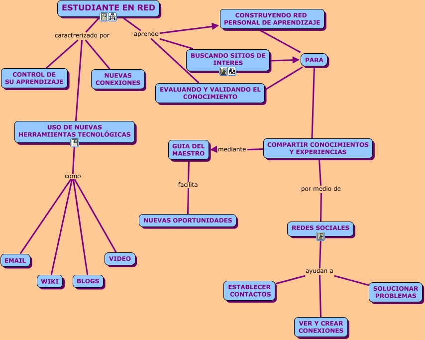 Este Cmap, tiene información relacionada con: ESTUDIANTE EN RED, COMPARTIR CONOCIMIENTOS Y EXPERIENCIAS mediante GUIA DEL MAESTRO, COMPARTIR CONOCIMIENTOS Y EXPERIENCIAS por medio de REDES SOCIALES, USO DE NUEVAS HERRAMIIENTAS TECNOLÓGICAS como BLOGS, USO DE NUEVAS HERRAMIIENTAS TECNOLÓGICAS como VIDEO, BUSCANDO SITIOS DE INTERES ???? PARA, PARA ???? COMPARTIR CONOCIMIENTOS Y EXPERIENCIAS, ESTUDIANTE EN RED aprende CONSTRUYENDO RED PERSONAL DE APRENDIZAJE, GUIA DEL MAESTRO facilita NUEVAS OPORTUNIDADES, USO DE NUEVAS HERRAMIIENTAS TECNOLÓGICAS como EMAIL, ESTUDIANTE EN RED aprende EVALUANDO Y VALIDANDO EL CONOCIMIENTO, PARA ???? EVALUANDO Y VALIDANDO EL CONOCIMIENTO, ESTUDIANTE EN RED caractrerizado por CONTROL DE SU APRENDIZAJE, ESTUDIANTE EN RED caractrerizado por USO DE NUEVAS HERRAMIIENTAS TECNOLÓGICAS, CONSTRUYENDO RED PERSONAL DE APRENDIZAJE ???? PARA, REDES SOCIALES ayudan a SOLUCIONAR PROBLEMAS, REDES SOCIALES ayudan a VER Y CREAR CONEXIONES, ESTUDIANTE EN RED aprende BUSCANDO SITIOS DE INTERES, ESTUDIANTE EN RED caractrerizado por NUEVAS CONEXIONES, USO DE NUEVAS HERRAMIIENTAS TECNOLÓGICAS como WIKI, REDES SOCIALES ayudan a ESTABLECER CONTACTOS
