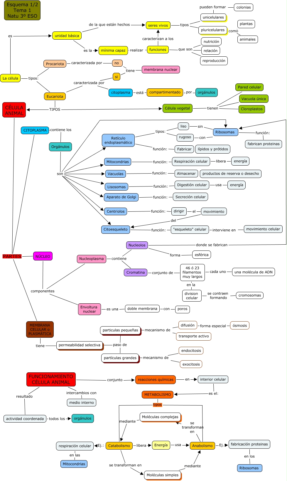 Este Cmap, tiene información relacionada con: Tema 1 1_2 El ser humano como animal pluricelular, 46 ó 23 filamentos muy largos en la division celular, Cromatina conjunto de 46 ó 23 filamentos muy largos, funciones que son reproducción, FUNCIONAMIENTO CÉLULA ANIMAL intercambios con medio interno, funciones que son nutrición, Orgánulos son Retículo endoplasmático, La célula es unidad básica, Nucleolos donde se fabrican Ribosomas, Célula vegetal tienen Vacuola única, particulas pequeñas mecanismo de transporte activo, Orgánulos son Citoesqueleto, rugoso con Ribosomas, Catabolismo se transforman en Moléculas simples, MEMBRANA CELULAR o PLASMÁTICA tiene permeabilidad selectiva, Anabolismo se transforman en Moléculas complejas, Ribosomas función: fabrican proteinas, Retículo endoplasmático tipos: liso, actividad coordenada todos los orgánulos, Nucleolos forma esférica, pluricelulares como animales