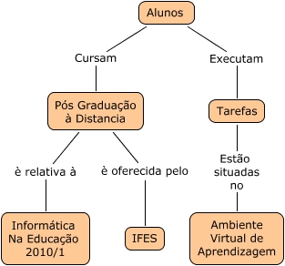 Esse mapa conceitual, produzido no IHMC CmapTools, tem a informação relacionada a: escopo, Alunos Cursam Pós Graduação à Distancia, Tarefas Estão situadas no Ambiente Virtual de Aprendizagem, Alunos Executam Tarefas, Pós Graduação à Distancia è relativa à Informática Na Educação 2010/1, Pós Graduação à Distancia è oferecida pelo IFES