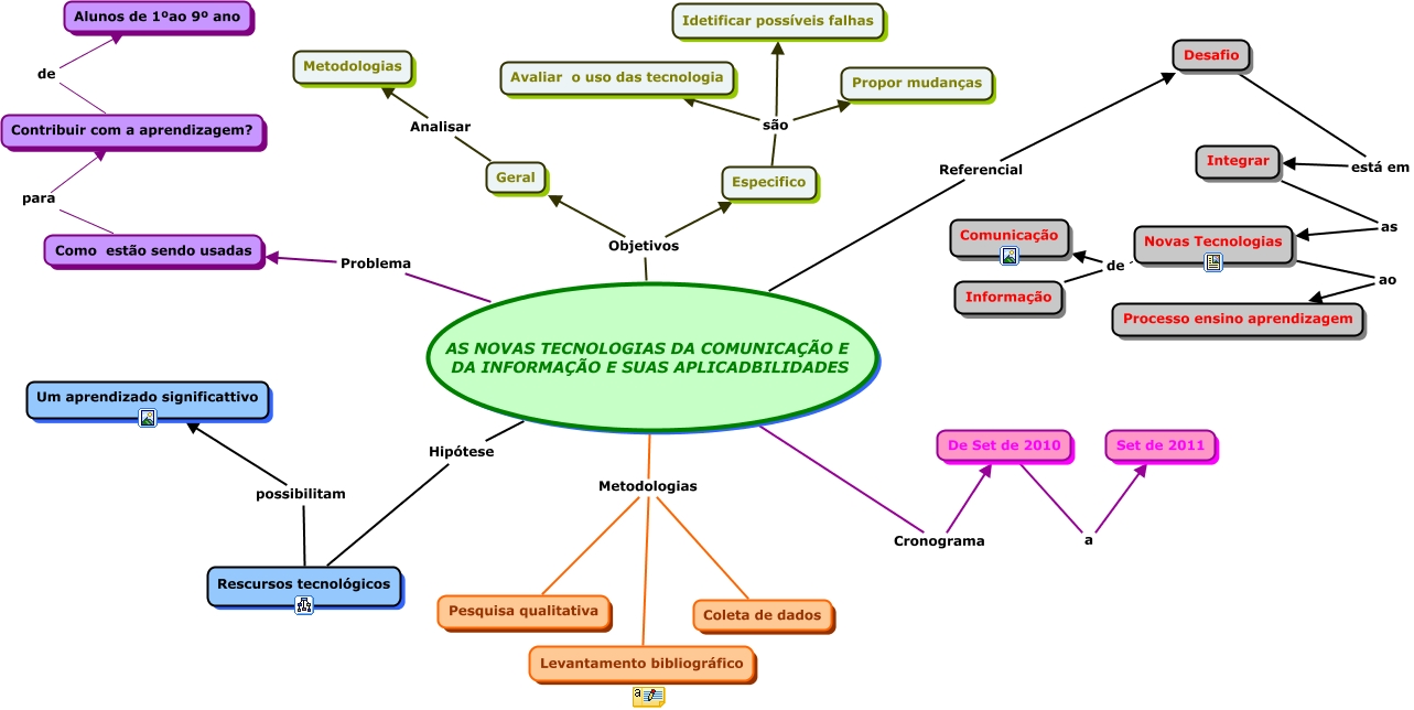 Esse mapa conceitual, produzido no IHMC CmapTools, tem a informação relacionada a: Mapa_Pré-projeto_Valeria_Donna.cmap, AS NOVAS TECNOLOGIAS DA COMUNICAÇÃO E DA INFORMAÇÃO E SUAS APLICADBILIDADES Metodologias Coleta de dados, Novas Tecnologias ao Processo ensino aprendizagem, AS NOVAS TECNOLOGIAS DA COMUNICAÇÃO E DA INFORMAÇÃO E SUAS APLICADBILIDADES Referencial Desafio, AS NOVAS TECNOLOGIAS DA COMUNICAÇÃO E DA INFORMAÇÃO E SUAS APLICADBILIDADES Metodologias Levantamento bibliográfico, Especifico são Idetificar possíveis falhas, AS NOVAS TECNOLOGIAS DA COMUNICAÇÃO E DA INFORMAÇÃO E SUAS APLICADBILIDADES Hipótese Rescursos tecnológicos, Rescursos tecnológicos possibilitam Um aprendizado significattivo, Especifico são Propor mudanças, Como estão sendo usadas para Contribuir com a aprendizagem?, AS NOVAS TECNOLOGIAS DA COMUNICAÇÃO E DA INFORMAÇÃO E SUAS APLICADBILIDADES Cronograma De Set de 2010, Novas Tecnologias de Informação, Especifico são Avaliar o uso das tecnologia, AS NOVAS TECNOLOGIAS DA COMUNICAÇÃO E DA INFORMAÇÃO E SUAS APLICADBILIDADES Objetivos Especifico, Novas Tecnologias de Comunicação, Integrar as Novas Tecnologias, AS NOVAS TECNOLOGIAS DA COMUNICAÇÃO E DA INFORMAÇÃO E SUAS APLICADBILIDADES Problema Como estão sendo usadas, Geral Analisar Metodologias, AS NOVAS TECNOLOGIAS DA COMUNICAÇÃO E DA INFORMAÇÃO E SUAS APLICADBILIDADES Metodologias Pesquisa qualitativa, AS NOVAS TECNOLOGIAS DA COMUNICAÇÃO E DA INFORMAÇÃO E SUAS APLICADBILIDADES Objetivos Geral, De Set de 2010 a Set de 2011