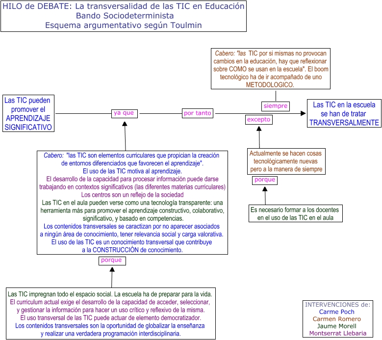 Este Cmap, tiene información relacionada con: Hilo Transversalidad de las TIC, Actualmente se hacen cosas tecnológicamente nuevas pero a la manera de siempre ???? excepto, ya que ???? ????, Las TIC pueden promover el APRENDIZAJE SIGNIFICATIVO por tanto Las TIC en la escuela se han de tratar TRANSVERSALMENTE, Cabero: "las TIC son elementos curriculares que propician la creación de entornos diferenciados que favorecen el aprendizaje". El uso de las TIC motiva al aprendizaje. El desarrollo de la capacidad para procesar información puede darse trabajando en contextos significativos (las diferentes materias curriculares) Los centros son un reflejo de la sociedad Las TIC en el aula pueden verse como una tecnología transparente: una herramienta más para promover el aprendizaje constructivo, colaborativo, significativo, y basado en competencias. Los contenidos transversales se caractizan por no aparecer asociados a ningún área de conocimiento, tener relevancia social y carga valorativa. El uso de las TIC es un conocimiento transversal que contribuye a la CONSTRUCCIÓN de conocimiento. ???? ????, Las TIC impregnan todo el espacio social. La escuela ha de preparar para la vida. El curriculum actual exige el desarrollo de la capacidad de acceder, seleccionar, y gestionar la información para hacer un uso crítico y reflexivo de la misma. El uso transversal de las TIC puede actuar de elemento democratizador. Los contenidos transversales son la oportunidad de globalizar la enseñanza y realizar una verdadera programación interdisciplinaria. ???? porque, Cabero: "las TIC por si mismas no provocan cambios en la educación, hay que reflexionar sobre COMO se usan en la escuela". El boom tecnológico ha de ir acompañado de uno METODOLOGICO. ???? siempre, Es necesario formar a los docentes en el uso de las TIC en el aula ???? porque