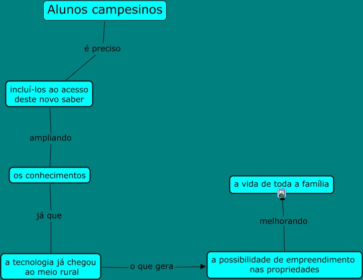 Esse mapa conceitual, produzido no IHMC CmapTools, tem a informação relacionada a: Alunos campesinos, incluí-los ao acesso deste novo saber ampliando os conhecimentos, a possibilidade de empreendimento nas propriedades melhorando a vida de toda a família, a tecnologia já chegou ao meio rural o que gera a possibilidade de empreendimento nas propriedades, os conhecimentos já que a tecnologia já chegou ao meio rural, Alunos campesinos é preciso incluí-los ao acesso deste novo saber