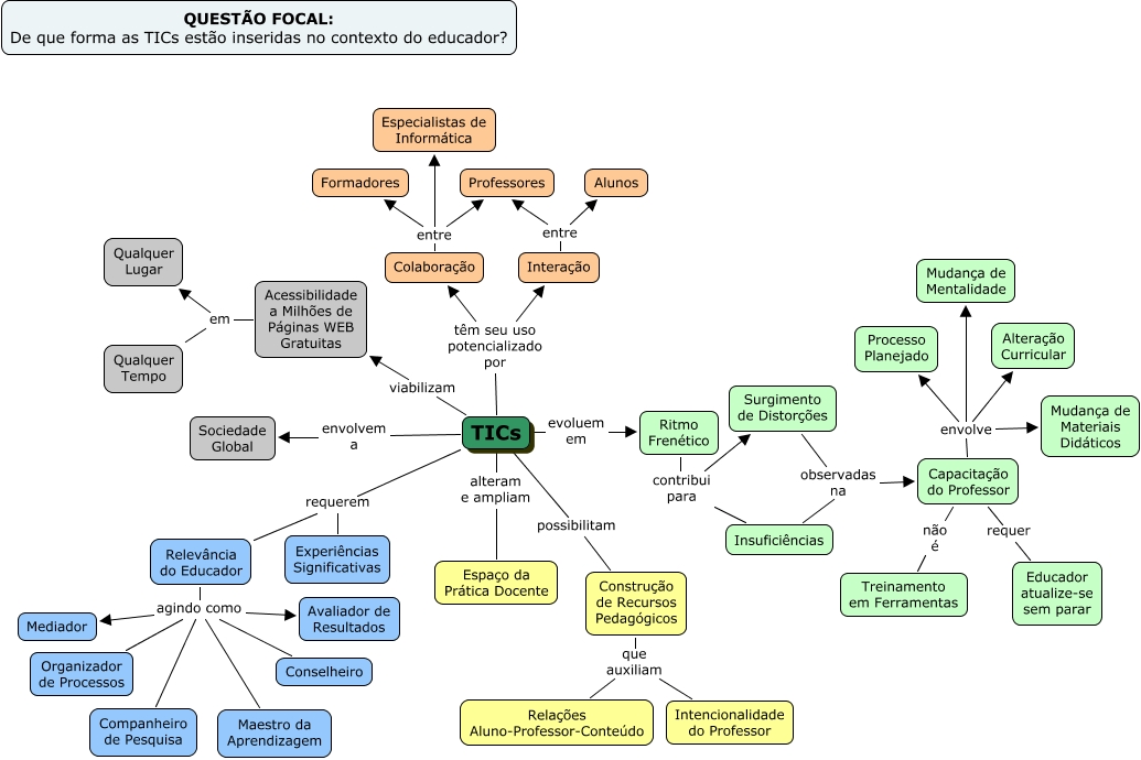 Esse mapa conceitual, produzido no IHMC CmapTools, tem a informação relacionada a: Revisão Teórica da Proposta de Projeto de Pesquisa de Sérgio Costa, Capacitação do Professor envolve Alteração Curricular, TICs alteram e ampliam Espaço da Prática Docente, Surgimento de Distorções observadas na Capacitação do Professor, TICs requerem Experiências Significativas, Construção de Recursos Pedagógicos que auxiliam Relações Aluno-Professor-Conteúdo, Relevância do Educador agindo como Avaliador de Resultados, TICs têm seu uso potencializado por Colaboração, Colaboração entre Formadores, Colaboração entre Especialistas de Informática, TICs viabilizam Acessibilidade a Milhões de Páginas WEB Gratuitas, Relevância do Educador agindo como Maestro da Aprendizagem, TICs possibilitam Construção de Recursos Pedagógicos, TICs envolvem a Sociedade Global, Interação entre Professores, Acessibilidade a Milhões de Páginas WEB Gratuitas em Qualquer Lugar, TICs evoluem em Ritmo Frenético, Acessibilidade a Milhões de Páginas WEB Gratuitas em Qualquer Tempo, Insuficiências observadas na Capacitação do Professor, Capacitação do Professor não é Treinamento em Ferramentas, TICs têm seu uso potencializado por Interação