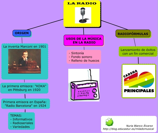 Este Cmap, tiene información relacionada con: Radio, Primera emisora en España: "Radio Barcelona" en 1924 ???? TEMAS: - Informativos - Radioseriales - Variedades, RADIOFÓRMULAS ???? Lanzamiento de éxitos con un fin comercial, LA RADIO ???? RADIOFÓRMULAS, LA RADIO ???? USOS DE LA MÚSICA EN LA RADIO, Lanzamiento de éxitos con un fin comercial ????, LA RADIO ???? ORIGEN, Primera emisora en España: "Radio Barcelona" en 1924 ???? TEMAS: - Informativos - Radioseriales - Variedades, La primera emisora: "KDKA" en Pittsburg en 1920 ???? Primera emisora en España: "Radio Barcelona" en 1924, USOS DE LA MÚSICA EN LA RADIO ???? - Sintonía - Fondo sonoro - Relleno de huecos, La inventa Marconi en 1901 ???? La primera emisora: "KDKA" en Pittsburg en 1920, ORIGEN ???? La inventa Marconi en 1901