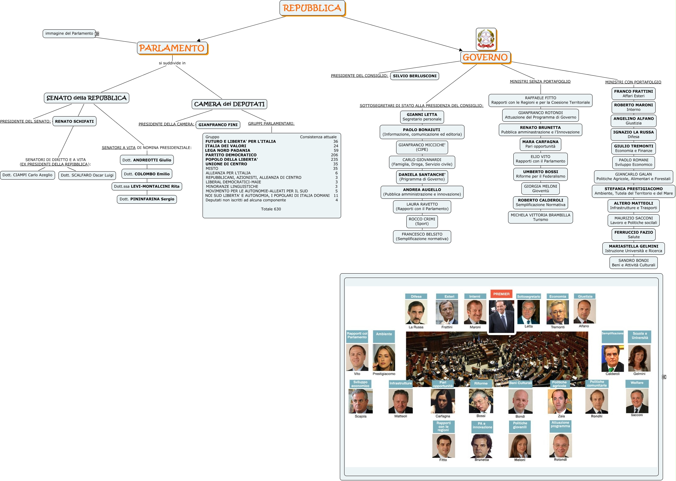Questa Cmap, creata con IHMC CmapTools, contiene informazioni relative a: PARLAMENTO E GOVERNO ITALIANO (Vero Arioli), GOVERNO MINISTRI CON PORTAFOLGIO ROBERTO MARONI Interno, CAMERA dei DEPUTATI PRESIDENTE DELLA CAMERA: GIANFRANCO FINI, GOVERNO MINISTRI SENZA PORTAFOGLIO GIANFRANCO ROTONDI Attuazione del Programma di Governo, GOVERNO MINISTRI SENZA PORTAFOGLIO MICHELA VITTORIA BRAMBILLA Turismo, PARLAMENTO si suddivide in SENATO della REPUBBLICA, SENATO della REPUBBLICA SENATORI A VITA DI NOMINA PRESIDENZIALE: Dott. PININFARINA Sergio, SENATO della REPUBBLICA SENATORI DI DIRITTO E A VITA (EX PRESIDENTI DELLA REPIBBLICA): Dott. CIAMPI Carlo Azeglio, GOVERNO MINISTRI SENZA PORTAFOGLIO RAFFAELE FITTO Rapporti con le Regioni e per la Coesione Territoriale, GOVERNO MINISTRI SENZA PORTAFOGLIO RENATO BRUNETTA Pubblica amminastrazione e l'Innovazione, GOVERNO SOTTOSEGRETARI DI STATO ALLA PRESIDENZA DEL CONSIGLIO: DANIELA SANTANCHE' (Prigramma di Governo), GOVERNO SOTTOSEGRETARI DI STATO ALLA PRESIDENZA DEL CONSIGLIO: CARLO GIOVANARDI (Famiglia, Droga, Servizio civile), GOVERNO MINISTRI SENZA PORTAFOGLIO ROBERTO CALDEROLI Semplificazione Normativa, GOVERNO MINISTRI CON PORTAFOLGIO MARIASTELLA GELMINI Istruzione Università e Ricerca, GOVERNO MINISTRI CON PORTAFOLGIO IGNAZIO LA RUSSA Difesa, PARLAMENTO, REPUBBLICA GOVERNO, GOVERNO MINISTRI CON PORTAFOLGIO GIANCARLO GALAN Politiche Agricole, Alimentari e Forestali, GOVERNO MINISTRI CON PORTAFOLGIO FRANCO FRATTINI Affari Esteri, SENATO della REPUBBLICA SENATORI A VITA DI NOMINA PRESIDENZIALE: Dott.ssa LEVI-MONTALCINI Rita, GOVERNO MINISTRI CON PORTAFOLGIO PAOLO ROMANI Sviluppo Economico