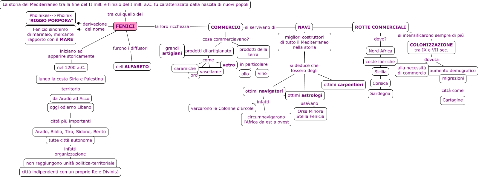 Questa Cmap, creata con IHMC CmapTools, contiene informazioni relative a: Fenici (Vero Arioli), ottimi navigatori infatti varcarono le Colonne d'Ercole, COMMERCIO si servivano di NAVI, prodotti di artigianato come vetro, oggi odierno Libano città più importanti tutte città autonome, COMMERCIO cosa commerciavano? prodotti della terra, ROTTE COMMERCIALI dove? Nord Africa, tutte città autonome infatti organizzazione città indipendenti con un proprio Re e Divinità, FENICI iniziano ad apparire storicamente nel 1200 a.C., prodotti della terra in particolare olio, ottimi navigatori infatti circumnavigarono l'Africa da est a ovest, FENICI furono i diffusori dell'ALFABETO, tutte città autonome infatti organizzazione non raggiungono unità politica-territoriale, lungo la costa Siria e Palestina territorio da Arado ad Acco, COLONIZZAZIONE tra IX e VII sec. dovuta alla necessità di commercio, tutte città autonome infatti organizzazione non raggiungono unità politica-territoriale, prodotti della terra in particolare vino, FENICI iniziano ad apparire storicamente lungo la costa Siria e Palestina, ROTTE COMMERCIALI si intensificarono sempre di più COLONIZZAZIONE tra IX e VII sec., COLONIZZAZIONE tra IX e VII sec. dovuta aumento demografico, COMMERCIO cosa commerciavano? prodotti di artigianato
