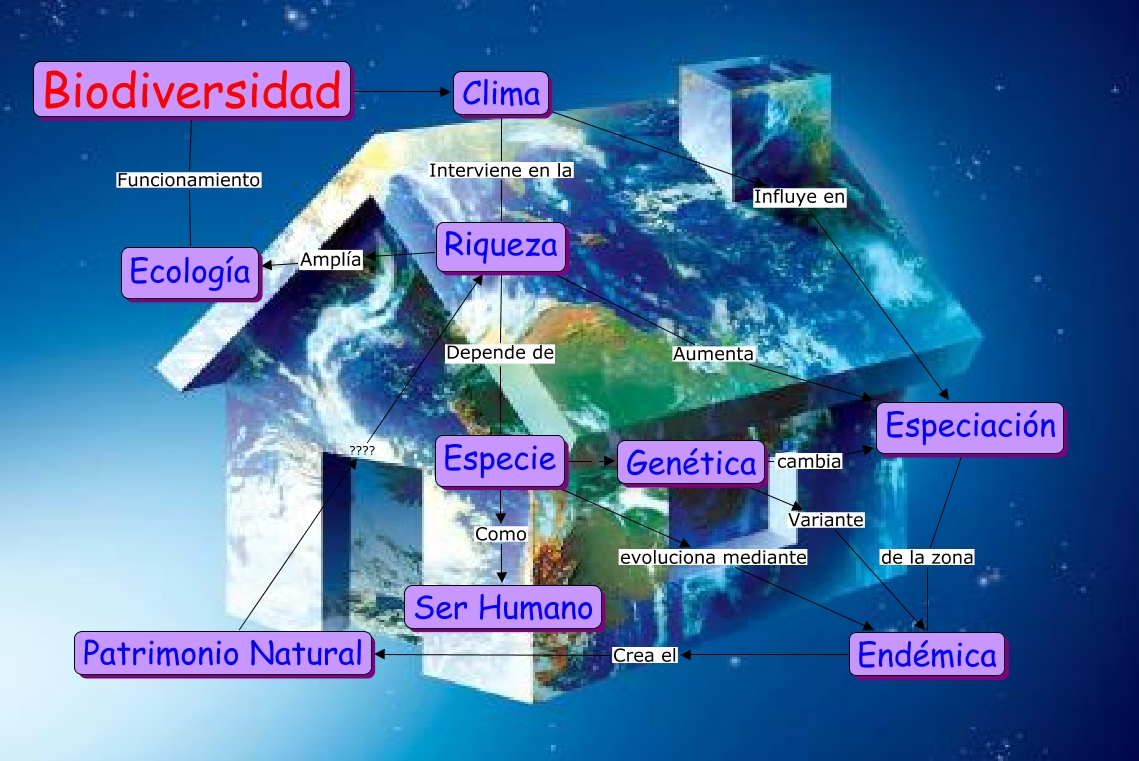 Este Cmap, tiene información relacionada con: BIODIVERSIDAD, Genética cambia Especiación, Biodiversidad Clima, Clima Influye en Especiación, Especie Como Ser Humano, Especiación de la zona Endémica, Especie Genética, Patrimonio Natural ???? Riqueza, Especie evoluciona mediante Endémica, Endémica Crea el Patrimonio Natural, Riqueza Amplía Ecología, Biodiversidad Funcionamiento Ecología, Clima Interviene en la Riqueza, Riqueza Depende de Especie, Genética Variante Endémica, Riqueza Aumenta Especiación