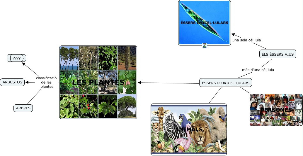 Aquest mapa conceptual conté informació relacionada amb: MONROESSERSVIUS, LES PLANTES classificació de les plantes ARBUSTOS, ÉSSERS PLURICEL·LULARS ???? PERSONES, ÉSSERS PLURICEL·LULARS ???? ANIMALS, LES PLANTES classificació de les plantes ARBRES, ELS ÉSSERS VIUS més d'una cèl·lula ÉSSERS PLURICEL·LULARS, LES PLANTES classificació de les plantes HERBES, ELS ÉSSERS VIUS una sola cèl·lula ÉSSERS UNICEL·LULARS, ÉSSERS PLURICEL·LULARS ???? LES PLANTES