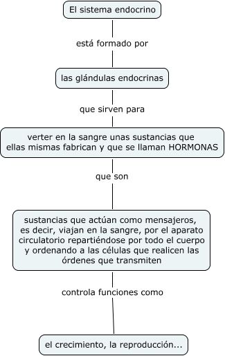 Este Cmap, tiene información relacionada con: El sistema endocrino, verter en la sangre unas sustancias que ellas mismas fabrican y que se llaman HORMONAS que son sustancias que actúan como mensajeros, es decir, viajan en la sangre, por el aparato circulatorio repartiéndose por todo el cuerpo y ordenando a las células que realicen las órdenes que transmiten, sustancias que actúan como mensajeros, es decir, viajan en la sangre, por el aparato circulatorio repartiéndose por todo el cuerpo y ordenando a las células que realicen las órdenes que transmiten controla funciones como el crecimiento, la reproducción..., las glándulas endocrinas que sirven para verter en la sangre unas sustancias que ellas mismas fabrican y que se llaman HORMONAS, El sistema endocrino está formado por las glándulas endocrinas
