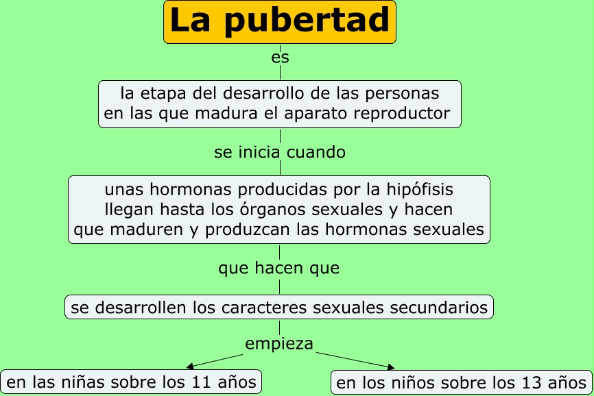 Este Cmap, tiene información relacionada con: La pubertad, unas hormonas producidas por la hipófisis llegan hasta los órganos sexuales y hacen que maduren y produzcan las hormonas sexuales que hacen que se desarrollen los caracteres sexuales secundarios, La pubertad es la etapa del desarrollo de las personas en las que madura el aparato reproductor, se desarrollen los caracteres sexuales secundarios empieza en los niños sobre los 13 años, la etapa del desarrollo de las personas en las que madura el aparato reproductor se inicia cuando unas hormonas producidas por la hipófisis llegan hasta los órganos sexuales y hacen que maduren y produzcan las hormonas sexuales, se desarrollen los caracteres sexuales secundarios empieza en las niñas sobre los 11 años