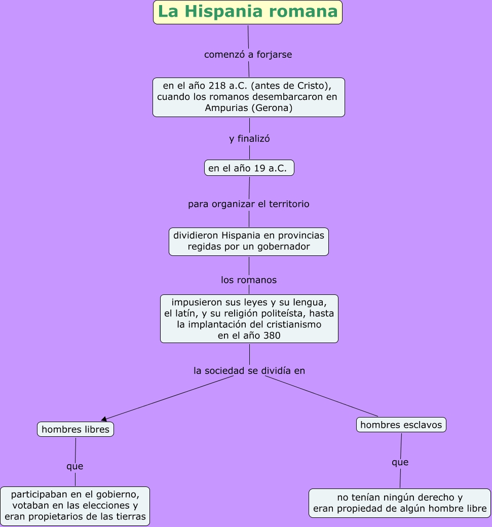 Este Cmap, tiene información relacionada con: La Hispania romana, hombres esclavos que no tenían ningún derecho y eran propiedad de algún hombre libre, hombres libres que participaban en el gobierno, votaban en las elecciones y eran propietarios de las tierras, impusieron sus leyes y su lengua, el latín, y su religión politeísta, hasta la implantación del cristianismo en el año 380 la sociedad se dividía en hombres esclavos, en el año 218 a.C. (antes de Cristo), cuando los romanos desembarcaron en Ampurias (Gerona) y finalizó en el año 19 a.C., dividieron Hispania en provincias regidas por un gobernador los romanos impusieron sus leyes y su lengua, el latín, y su religión politeísta, hasta la implantación del cristianismo en el año 380, en el año 19 a.C. para organizar el territorio dividieron Hispania en provincias regidas por un gobernador, La Hispania romana comenzó a forjarse en el año 218 a.C. (antes de Cristo), cuando los romanos desembarcaron en Ampurias (Gerona), impusieron sus leyes y su lengua, el latín, y su religión politeísta, hasta la implantación del cristianismo en el año 380 la sociedad se dividía en hombres libres