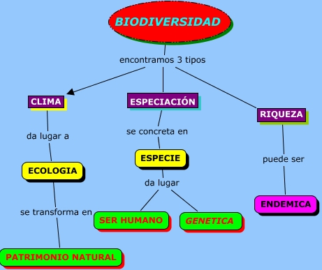 Este Cmap, tiene información relacionada con: biodiversidad mapa, BIODIVERSIDAD encontramos 3 tipos RIQUEZA, ESPECIE da lugar SER HUMANO, ECOLOGIA se transforma en PATRIMONIO NATURAL, ESPECIACIÓN se concreta en ESPECIE, CLIMA da lugar a ECOLOGIA, RIQUEZA puede ser ENDEMICA, ESPECIE da lugar GENETICA, BIODIVERSIDAD encontramos 3 tipos CLIMA, BIODIVERSIDAD encontramos 3 tipos ESPECIACIÓN