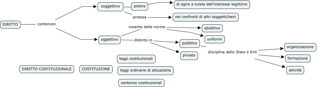Questa Cmap, creata con IHMC CmapTools, contiene informazioni relative a: Diritto Civile, pubblico disciplina dello Stato e Enti formazione, DIRITTO contenuto soggettivo, oggettivo distinto in privato, DIRITTO contenuto oggettivo, soggettivo di agire a tutela dell'interesse legittimo, oggettivo insieme delle norme obiettive, oggettivo insieme delle norme uniformi, pubblico disciplina dello Stato e Enti organizzazione, oggettivo distinto in pubblico, soggettivo pretesa nei confronti di altri soggetti/beni, pubblico disciplina dello Stato e Enti attività