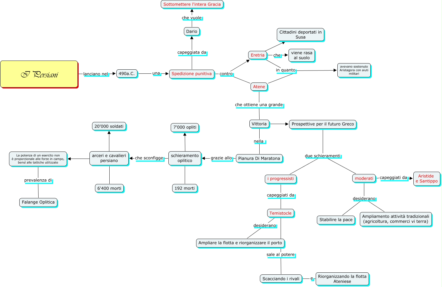 Questa Cmap, creata con IHMC CmapTools, contiene informazioni relative a: La Prima Guerra Tra Greci e Persiani - Parte II (Sonzogni), arceri e cavalieri persiano ???? 20'000 soldati, moderati capeggiati da Aristide e Santippo, I Persiani lanciano nel 490a.C., Atene che ottiene una grande Vittoria, Eretria in quanto avevano sostenuto Aristagora con aiuti militari, Pianura Di Maratona grazie allo schieramento oplitico, schieramento oplitico ???? 192 morti, Eretria che viene rasa al suolo, Vittoria ???? Prospettive per il futuro Greco, schieramento oplitico ???? 7'000 opliti, Temistocle sale al potere Scacciando i rivali, Spedizione punitiva capeggiata da Dario, i progressisti capeggiati da Temistocle, 490a.C. una Spedizione punitiva, moderati desiderano Ampliamento attività tradizionali (agricoltura, commerci vi terra), Spedizione punitiva contro Atene, Eretria ???? Cittadini deportati in Susa, Prospettive per il futuro Greco due schieramenti moderati, Dario che vuole Sottomettere l'intera Gracia, La potenza di un esercito non è proporzionale alle forze in campo, bensì alle tattiche utilizzate prevalenza di Falange Oplitica