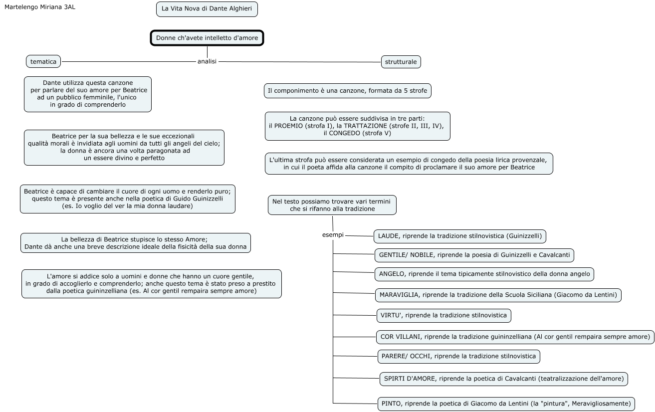 Questa Cmap, creata con IHMC CmapTools, contiene informazioni relative a: Donne ch'avete intelletto d'amore-Miriana, Nel testo possiamo trovare vari termini che si rifanno alla tradizione esempi GENTILE/ NOBILE, riprende la poesia di Guinizzelli e Cavalcanti, Nel testo possiamo trovare vari termini che si rifanno alla tradizione esempi MARAVIGLIA, riprende la tradizione della Scuola Siciliana (Giacomo da Lentini), Nel testo possiamo trovare vari termini che si rifanno alla tradizione esempi PARERE/ OCCHI, riprende la tradizione stilnovistica, Donne ch'avete intelletto d'amore analisi tematica, Donne ch'avete intelletto d'amore analisi strutturale, Nel testo possiamo trovare vari termini che si rifanno alla tradizione esempi LAUDE, riprende la tradizione stilnovistica (Guinizzelli), Nel testo possiamo trovare vari termini che si rifanno alla tradizione esempi VIRTU', riprende la tradizione stilnovistica, Nel testo possiamo trovare vari termini che si rifanno alla tradizione esempi COR VILLANI, riprende la tradizione guininzelliana (Al cor gentil rempaira sempre amore), Nel testo possiamo trovare vari termini che si rifanno alla tradizione esempi PINTO, riprende la poetica di Giacomo da Lentini (la "pintura", Meravigliosamente), Nel testo possiamo trovare vari termini che si rifanno alla tradizione esempi ANGELO, riprende il tema tipicamente stilnovistico della donna angelo, Nel testo possiamo trovare vari termini che si rifanno alla tradizione esempi SPIRTI D'AMORE, riprende la poetica di Cavalcanti (teatralizzazione dell'amore)