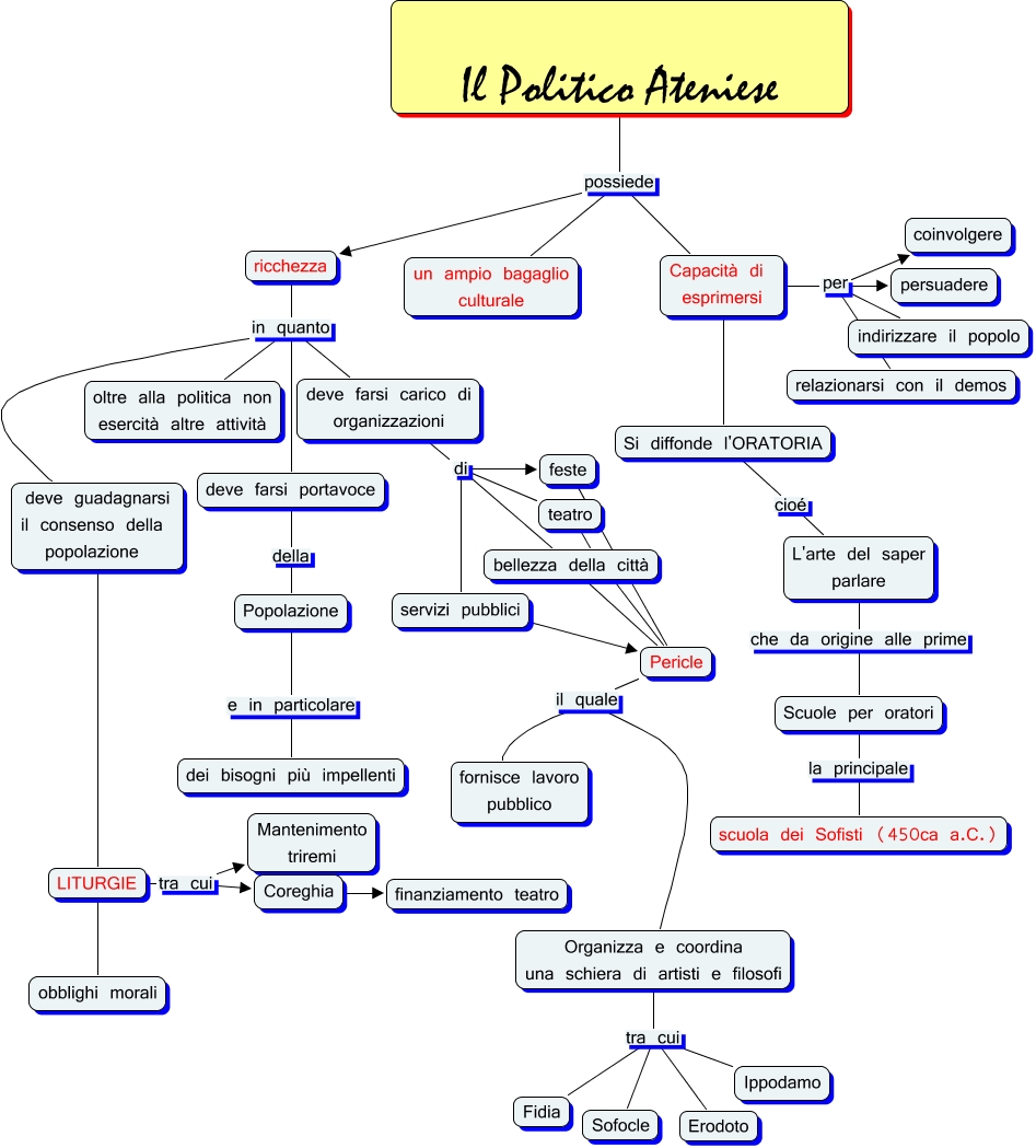 Questa Cmap, creata con IHMC CmapTools, contiene informazioni relative a: Il Politico Ateniese - appunti lezione (Sonzogni), bellezza della città ???? Pericle, deve guadagnarsi il consenso della popolazione ???? LITURGIE, Pericle il quale Organizza e coordina una schiera di artisti e filosofi, teatro ???? Pericle, Organizza e coordina una schiera di artisti e filosofi tra cui Fidia, deve farsi carico di organizzazioni di bellezza della città, deve farsi carico di organizzazioni di feste, Si diffonde l'ORATORIA cioé L'arte del saper parlare, Capacità di esprimersi per coinvolgere, deve farsi portavoce della Popolazione, Capacità di esprimersi ???? Si diffonde l'ORATORIA, Capacità di esprimersi per persuadere, Coreghia ???? finanziamento teatro, LITURGIE tra cui Mantenimento triremi, deve farsi carico di organizzazioni di teatro, LITURGIE ???? obblighi morali, feste ???? Pericle, servizi pubblici ???? Pericle, Pericle il quale fornisce lavoro pubblico, deve farsi carico di organizzazioni di servizi pubblici