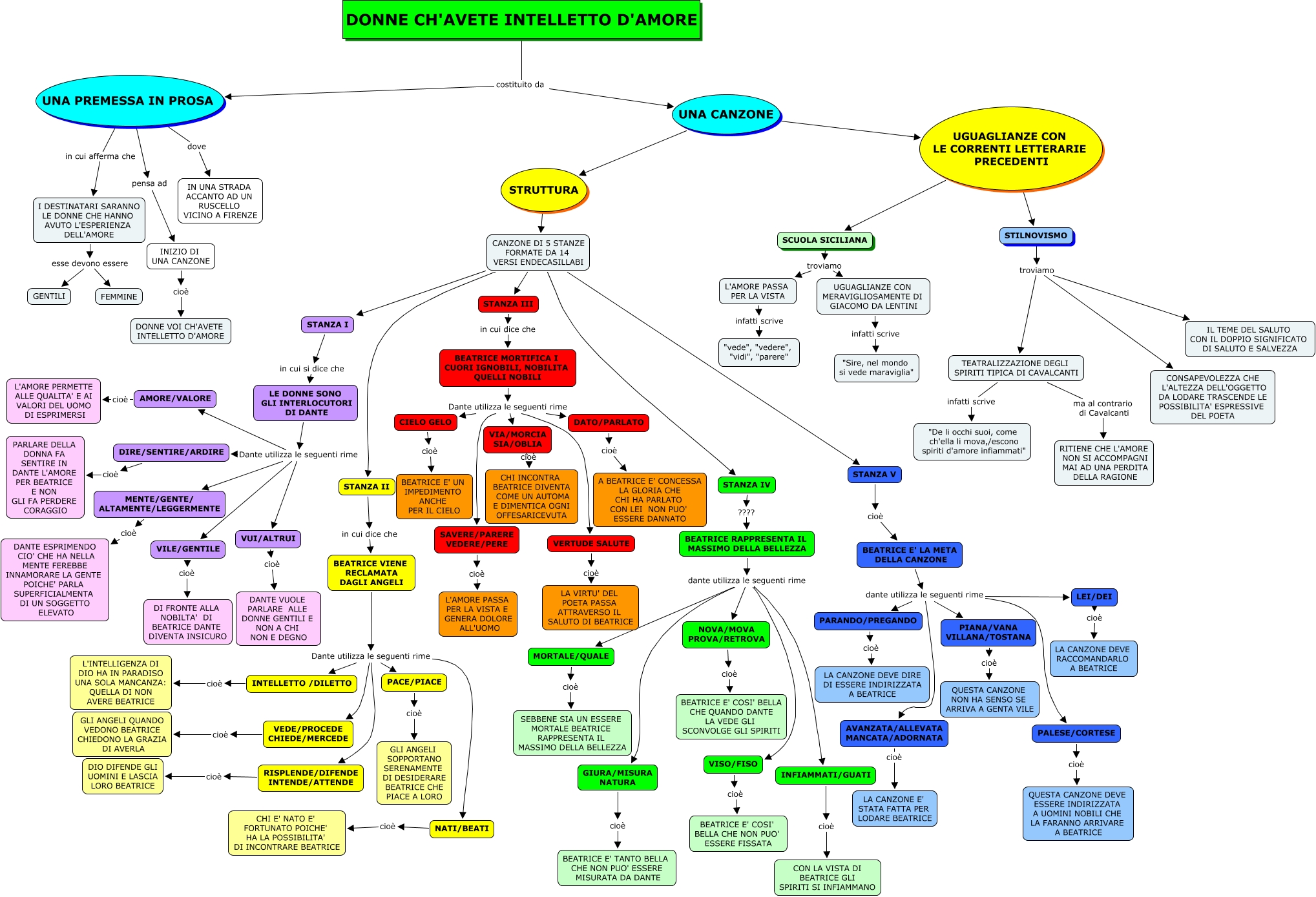 Questa Cmap, creata con IHMC CmapTools, contiene informazioni relative a: Copia di DONNE CH'AVETE Gaboardi Diego, BEATRICE VIENE RECLAMATA DAGLI ANGELI Dante utilizza le seguenti rime PACE/PIACE, BEATRICE E' LA META DELLA CANZONE dante utilizza le seguenti rime PALESE/CORTESE, AVANZATA/ALLEVATA MANCATA/ADORNATA cioè LA CANZONE E' STATA FATTA PER LODARE BEATRICE, I DESTINATARI SARANNO LE DONNE CHE HANNO AVUTO L'ESPERIENZA DELL'AMORE esse devono essere GENTILI, INFIAMMATI/GUATI cioè CON LA VISTA DI BEATRICE GLI SPIRITI SI INFIAMMANO, VILE/GENTILE cioè DI FRONTE ALLA NOBILTA' DI BEATRICE DANTE DIVENTA INSICURO, LE DONNE SONO GLI INTERLOCUTORI DI DANTE Dante utilizza le seguenti rime DIRE/SENTIRE/ARDIRE, AMORE/VALORE cioè L'AMORE PERMETTE ALLE QUALITA' E AI VALORI DEL UOMO DI ESPRIMERSI, STANZA IV ???? BEATRICE RAPPRESENTA IL MASSIMO DELLA BELLEZZA, STILNOVISMO troviamo CONSAPEVOLEZZA CHE L'ALTEZZA DELL'OGGETTO DA LODARE TRASCENDE LE POSSIBILITA' ESPRESSIVE DEL POETA, BEATRICE E' LA META DELLA CANZONE dante utilizza le seguenti rime PIANA/VANA VILLANA/TOSTANA, PALESE/CORTESE cioè QUESTA CANZONE DEVE ESSERE INDIRIZZATA A UOMINI NOBILI CHE LA FARANNO ARRIVARE A BEATRICE, TEATRALIZZAZIONE DEGLI SPIRITI TIPICA DI CAVALCANTI infatti scrive "De li occhi suoi, come ch'ella li mova,/escono spiriti d'amore infiammati", LE DONNE SONO GLI INTERLOCUTORI DI DANTE Dante utilizza le seguenti rime VILE/GENTILE, DONNE CH'AVETE INTELLETTO D'AMORE costituito da UNA CANZONE, BEATRICE VIENE RECLAMATA DAGLI ANGELI Dante utilizza le seguenti rime RISPLENDE/DIFENDE INTENDE/ATTENDE, DATO/PARLATO cioè A BEATRICE E' CONCESSA LA GLORIA CHE CHI HA PARLATO CON LEI NON PUO' ESSERE DANNATO, BEATRICE MORTIFICA I CUORI IGNOBILI, NOBILITA QUELLI NOBILI Dante utilizza le seguenti rime VERTUDE SALUTE, NOVA/MOVA PROVA/RETROVA cioè BEATRICE E' COSI' BELLA CHE QUANDO DANTE LA VEDE GLI SCONVOLGE GLI SPIRITI, BEATRICE RAPPRESENTA IL MASSIMO DELLA BELLEZZA dante utilizza le seguenti rime VISO/FISO