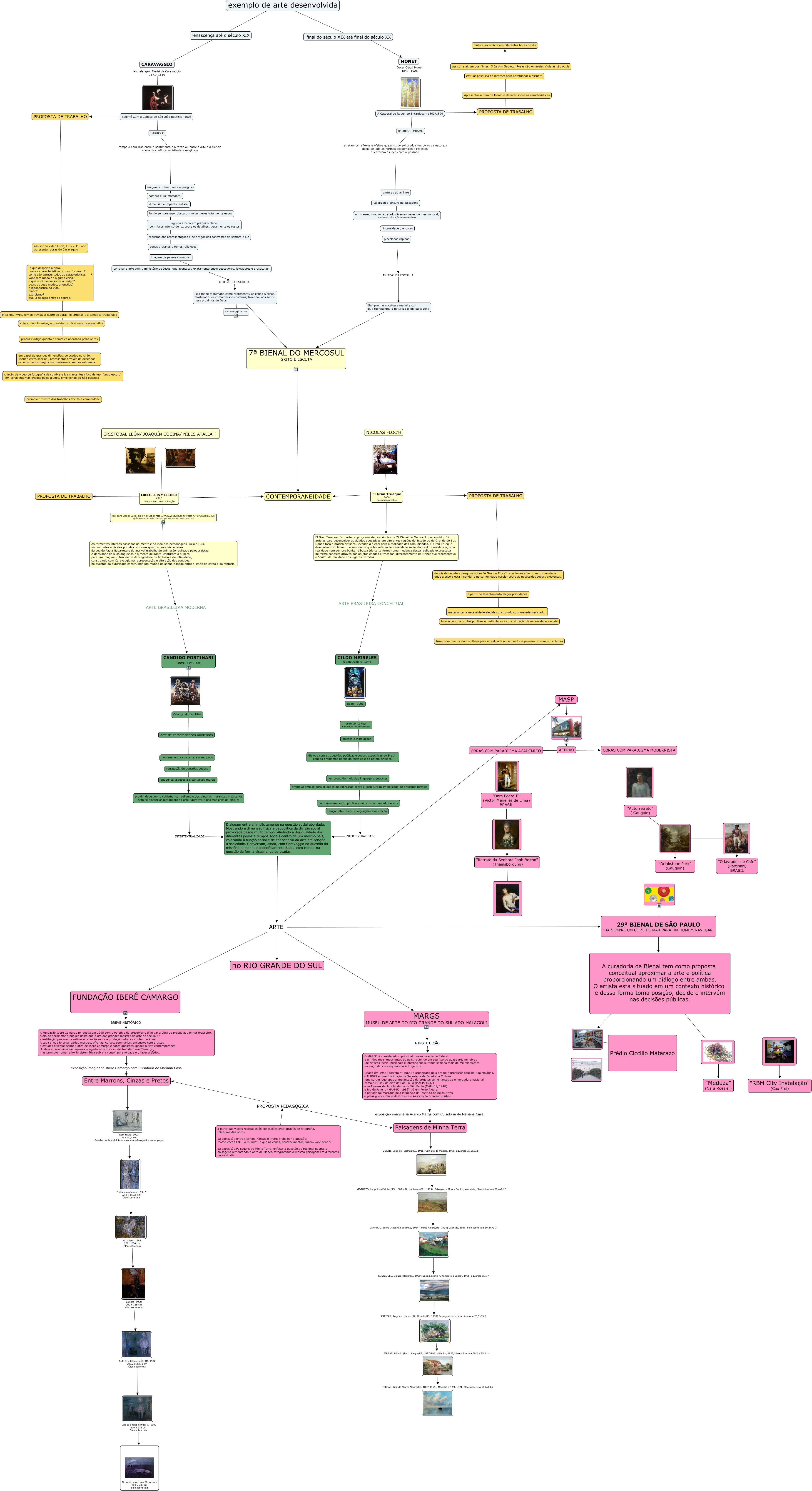 Esse mapa conceitual, produzido no IHMC CmapTools, tem a informação relacionada a: Mapa seminário 4 - Mariana, renascença até o século XIX ???? CARAVAGGIO, NICOLAS FLOC'H ???? El Gran Trueque 2009 Residencia Artística, Entre Marrons, Cinzas e Pretos ????, Dialogam entre si implicitamente na questão social abordada. Mostrando a dimensão física e geopolítica da divisão social provocada desde muito tempo. Aludindo a desigualdade dos diferentes povos e tempos sociais dentro de um mesmo país, colocando a função social e de consciencia da arte em relação a sociedade. Conversam, ainda, com Caravaggio na questão da misséria humana, e especificamente Babel com Monet na questão da forma visual e cores usadas. ARTE MARGS MUSEU DE ARTE DO RIO GRANDE DO SUL ADO MALAGOLI, ???? "Dom Pedro II" (Victor Meirelles de Lima) BRASIL, RODRIGUES, Glauco (Bagé/RS, 1929) Da minissérie “O tempo e o vento”, 1985, aquarela 55x77, depois de debate e pesquisa sobre "A Grande Troca" fazer levantamento na comunidade onde a escola esta inserida, e na comunidade escolar sobre as necessidas sociais existentes. ???? fazer com que os alunos olhem para a realidade ao seu redor e pensem no convívio coletivo, A Catedral de Rouen ao Entardecer- 1893/1894 ???? PROPOSTA DE TRABALHO, PROPOSTA DE TRABALHO ???? pintura ao ar livre em diferentes horas do dia, ???? "Retrato da Senhora Jonh Bolton" (Thainsboroung), ???? "Meduza" (Nara Roesler), Salomé Com a Cabeça de São João Baptista- 1608 ???? PROPOSTA DE TRABALHO, OBRAS COM PARADIGMA ACADÊMICO ???? OBRAS COM PARADIGMA MODERNISTA, CANDIDO PORTINARI Brasil 1902- 1962 ???? proximidade com o cubismo, surrealismo e dos pintores muralistas mexicanos sem se distanciar totalmente da arte figurativa e das tradições da pintura, A curadoria da Bienal tem como proposta conceitual aproximar a arte e política proporcionando um diálogo entre ambas. O artista está situado em um contexto histórico e dessa forma toma posição, decide e intervém nas decisões públicas. ????, El Gran Trueque 2009 Residencia Artística ???? PROPOSTA DE TRABALHO, ???? IMPRESSIONISMO, ???? "O lavrador de Café" (Portinari) BRASIL, LUCIA, LUIS Y EL LOBO 2007 Stop-motion, vídeo animação ???? PROPOSTA DE TRABALHO, a partir das visitas realizadas ás exposições criar através de fotografia, releituras das obras. da exposição entre Marrons, Cinzas e Pretos trabalhar a questão: "como você SENTE o mundo", o que as cenas, acontecimentos, fazem você sentir? da exposição Paisagens de Minha Terra, enfocar a questão do regional quanto a paisagens remontando a obra de Monet, fotografando a mesma paisagem em diferentes horas do dia. PROPOSTA PEDAGÓGICA Entre Marrons, Cinzas e Pretos