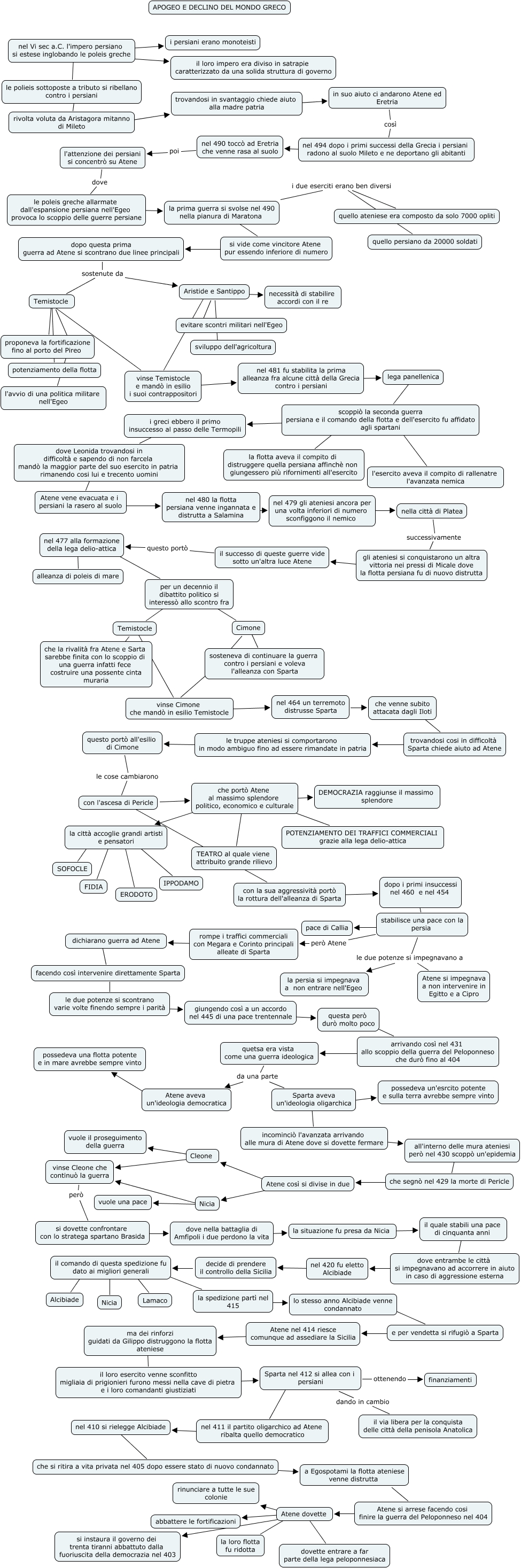 Questa Cmap, creata con IHMC CmapTools, contiene informazioni relative a: apogeo e declino del mondo greco cavagna, Cleone ???? vuole il proseguimento della guerra, trovandosi in svantaggio chiede aiuto alla madre patria ???? in suo aiuto ci andarono Atene ed Eretria, nel Vi sec a.C. l'impero persiano si estese inglobando le poleis greche ???? le polieis sottoposte a tributo si ribellano contro i persiani, con l'ascesa di Pericle ???? che portò Atene al massimo splendore politico, economico e culturale, Atene si arrese facendo cosi finire la guerra del Peloponneso nel 404 ???? Atene dovette, si dovette confrontare con lo stratega spartano Brasida ???? dove nella battaglia di Amfipoli i due perdono la vita, scoppiò la seconda guerra persiana e il comando della flotta e dell'esercito fu affidato agli spartani ???? l'esercito aveva il compito di rallenatre l'avanzata nemica, che venne subito attacata dagli Iloti ???? trovandosi cosi in difficoltà Sparta chiede aiuto ad Atene, Atene dovette ???? dovette entrare a far parte della lega peloponnesiaca, trovandosi cosi in difficoltà Sparta chiede aiuto ad Atene ???? le truppe ateniesi si comportarono in modo ambiguo fino ad essere rimandate in patria, Aristide e Santippo ???? necessità di stabilire accordi con il re, il quale stabili una pace di cinquanta anni ???? dove entrambe le città si impegnavano ad accorrere in aiuto in caso di aggressione esterna, nel Vi sec a.C. l'impero persiano si estese inglobando le poleis greche ???? il loro impero era diviso in satrapie caratterizzato da una solida struttura di governo, la città accoglie grandi artisti e pensatori ???? SOFOCLE, Atene dovette ???? la loro flotta fu ridotta, Atene così si divise in due ???? Nicia, facendo così intervenire direttamente Sparta ???? le due potenze si scontrano varie volte finendo sempre i parità, nel 479 gli ateniesi ancora per una volta inferiori di numero sconfiggono il nemico ???? nella città di Platea, l'attenzione dei persiani si concentrò su Atene dove le poleis greche allarmate dall'espansione persiana nell'Egeo provoca lo scoppio delle guerre persiane, Atene vene evacuata e i persiani la rasero al suolo ???? nel 480 la flotta persiana venne ingannata e distrutta a Salamina