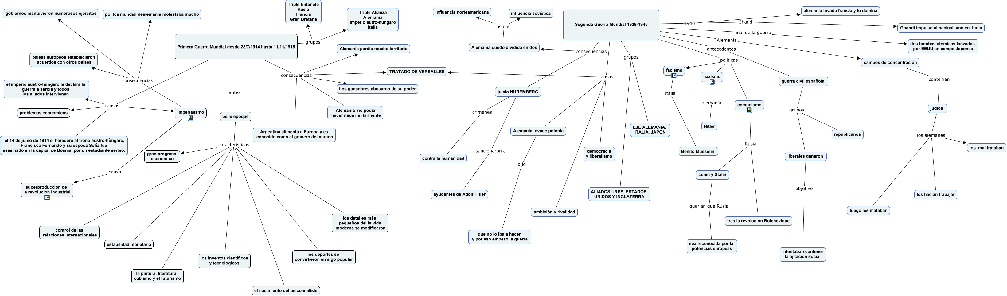 Este Cmap, tiene información relacionada con: fer y juanc, Primera Guerra Mundial desde 28/7/1914 hasta 11/11/1918 consecuencias Argentina alimenta a Europa y es conocido como el granero del mundo, Primera Guerra Mundial desde 28/7/1914 hasta 11/11/1918 causas imperialismo, Primera Guerra Mundial desde 28/7/1914 hasta 11/11/1918 grupos Triple Alianza Alemania imperio autro-hungaro Italia, Lenin y Stalin querian que Rusia sea reconocida por la potencias europeas, Segunda Guerra Mundial 1939-1945 causas Alemania invade polonia, Segunda Guerra Mundial 1939-1945 antecedentes guerra civil española, Primera Guerra Mundial desde 28/7/1914 hasta 11/11/1918 grupos Triple Entenete Rusia Francia Gran Bretaña, imperialismo consecuencias gobiernos mantuvieron numerosos ejercitos, Segunda Guerra Mundial 1939-1945 causas democracia y liberalismo, Segunda Guerra Mundial 1939-1945 politicas nazismo, comunismo Rusia tras la revolucion Bolchevique, Primera Guerra Mundial desde 28/7/1914 hasta 11/11/1918 causas el imperio austro-hungaro le declara la guerra a serbia y todos los aliados intervienen, belle époque caracteristicas estabilidad monetaria, Segunda Guerra Mundial 1939-1945 Ghandi Ghandi impulsó al nacinalismo en India, Alemania invade polonia dijo que no lo iba a hacer y por eso empezo la guerra, judios los alemanes luego los mataban, Segunda Guerra Mundial 1939-1945 causas TRATADO DE VERSALLES, belle époque caracteristicas los deportes se convirtieron en algo popular, belle époque caracteristicas el nacimiento del psicoanalisis, Segunda Guerra Mundial 1939-1945 consecuencias juicio NÜREMBERG
