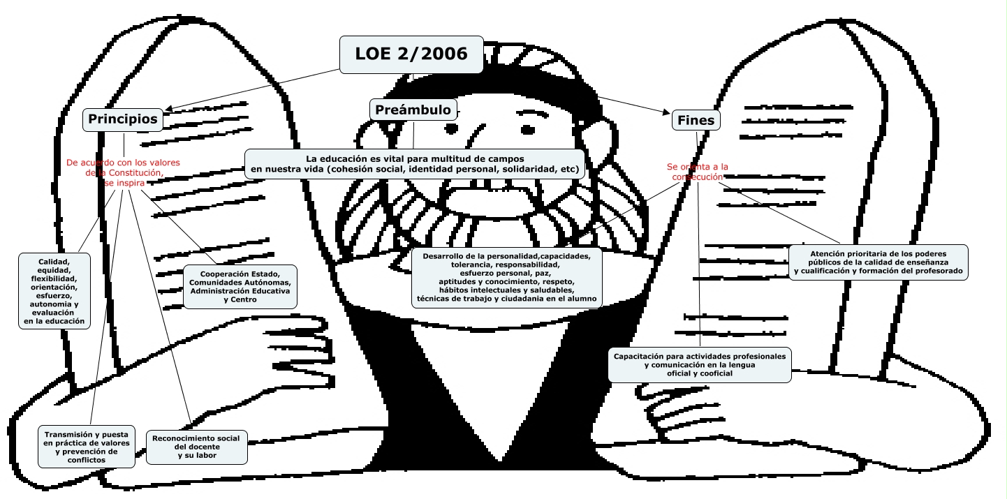 Este Cmap, tiene información relacionada con: CMAP2, Principios De acuerdo con los valores de la Constitución, se inspira Calidad, equidad, flexibilidad, orientación, esfuerzo, autonomia y evaluación en la educación, Fines Se orienta a la consecución Capacitación para actividades profesionales y comunicación en la lengua oficial y cooficial, Principios De acuerdo con los valores de la Constitución, se inspira Transmisión y puesta en práctica de valores y prevención de conflictos, LOE 2/2006 ???? Principios, LOE 2/2006 ???? Fines, Fines Se orienta a la consecución Atención prioritaria de los poderes públicos de la calidad de enseñanza y cualificación y formación del profesorado, Preámbulo ???? La educación es vital para multitud de campos en nuestra vida (cohesión social, identidad personal, solidaridad, etc), Principios De acuerdo con los valores de la Constitución, se inspira Reconocimiento social del docente y su labor, Fines Se orienta a la consecución Desarrollo de la personalidad,capacidades, tolerancia, responsabilidad, esfuerzo personal, paz, aptitudes y conocimiento, respeto, hábitos intelectuales y saludables, técnicas de trabajo y ciudadania en el alumno, Principios De acuerdo con los valores de la Constitución, se inspira Cooperación Estado, Comunidades Autónomas, Administración Educativa y Centro, LOE 2/2006 ???? Preámbulo