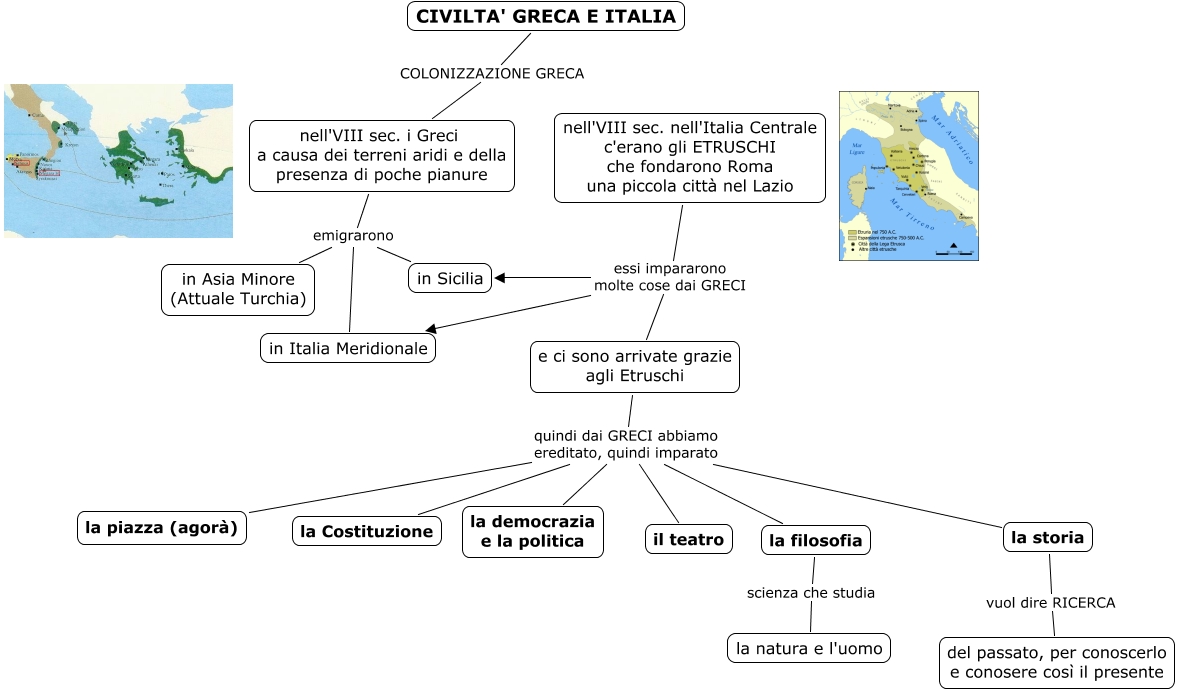 Questa Cmap, creata con IHMC CmapTools, contiene informazioni relative a: 03.civiltà greca ed Ittalia, e ci sono arrivate grazie agli Etruschi quindi dai GRECI abbiamo ereditato, quindi imparato il teatro, nell'VIII sec. nell'Italia Centrale c'erano gli ETRUSCHI che fondarono Roma una piccola città nel Lazio essi impararono molte cose dai GRECI e ci sono arrivate grazie agli Etruschi, e ci sono arrivate grazie agli Etruschi quindi dai GRECI abbiamo ereditato, quindi imparato la Costituzione, la storia vuol dire RICERCA del passato, per conoscerlo e conosere così il presente, e ci sono arrivate grazie agli Etruschi quindi dai GRECI abbiamo ereditato, quindi imparato la filosofia, nell'VIII sec. nell'Italia Centrale c'erano gli ETRUSCHI che fondarono Roma una piccola città nel Lazio essi impararono molte cose dai GRECI in Sicilia, CIVILTA' GRECA E ITALIA COLONIZZAZIONE GRECA nell'VIII sec. i Greci a causa dei terreni aridi e della presenza di poche pianure, nell'VIII sec. nell'Italia Centrale c'erano gli ETRUSCHI che fondarono Roma una piccola città nel Lazio essi impararono molte cose dai GRECI in Italia Meridionale, la filosofia scienza che studia la natura e l'uomo, e ci sono arrivate grazie agli Etruschi quindi dai GRECI abbiamo ereditato, quindi imparato la piazza (agorà), e ci sono arrivate grazie agli Etruschi quindi dai GRECI abbiamo ereditato, quindi imparato la storia, nell'VIII sec. i Greci a causa dei terreni aridi e della presenza di poche pianure emigrarono in Asia Minore (Attuale Turchia), e ci sono arrivate grazie agli Etruschi quindi dai GRECI abbiamo ereditato, quindi imparato la democrazia e la politica, nell'VIII sec. i Greci a causa dei terreni aridi e della presenza di poche pianure emigrarono in Italia Meridionale, nell'VIII sec. i Greci a causa dei terreni aridi e della presenza di poche pianure emigrarono in Sicilia