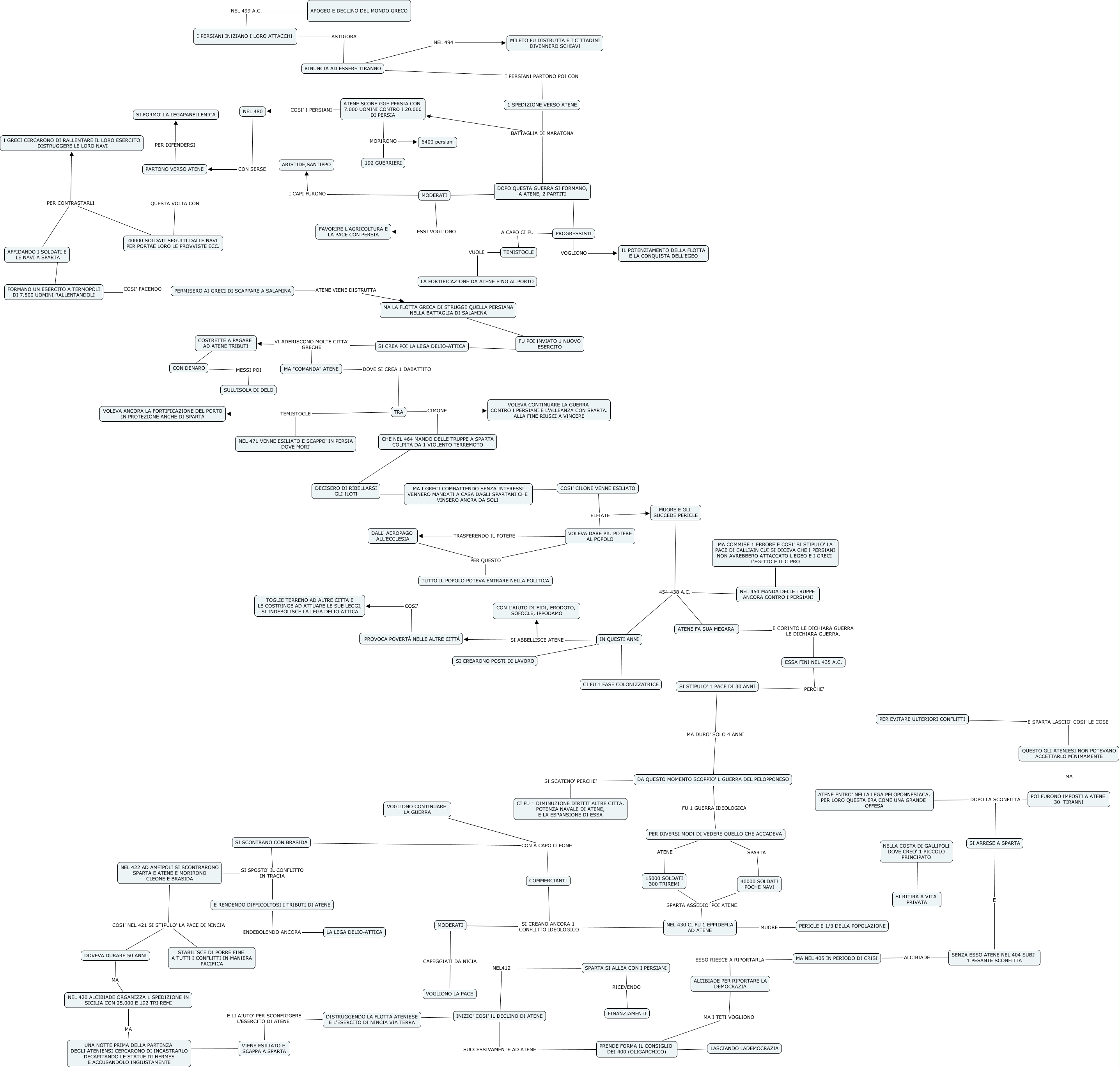 Questa Cmap, creata con IHMC CmapTools, contiene informazioni relative a: APOGEO E DECLINO DEL MONDO GRECO (ARIOLI SAMUELE), DOPO QUESTA GUERRA SI FORMANO, A ATENE, 2 PARTITI ???? MODERATI, MA NEL 405 IN PERIODO DI CRISI ALCIBIADE SENZA ESSO ATENE NEL 404 SUBI' 1 PESANTE SCONFITTA, TRA TEMISTOCLE NEL 471 VENNE ESILIATO E SCAPPO' IN PERSIA DOVE MORI', AFFIDANDO I SOLDATI E LE NAVI A SPARTA ???? FORMANO UN ESERCITO A TERMOPOLI DI 7.500 UOMINI RALLENTANDOLI, DALL' AEROPAGO ALL'ECCLESIA PER QUESTO TUTTO IL POPOLO POTEVA ENTRARE NELLA POLITICA, DECISERO DI RIBELLARSI GLI ILOTI ???? MA I GRECI COMBATTENDO SENZA INTERESSI VENNERO MANDATI A CASA DAGLI SPARTANI CHE VINSERO ANCRA DA SOLI, SI RITIRA A VITA PRIVATA ???? NELLA COSTA DI GALLIPOLI DOVE CREO' 1 PICCOLO PRINCIPATO, INIZIO' COSI' IL DECLINO DI ATENE NEL412 SPARTA SI ALLEA CON I PERSIANI, PER DIVERSI MODI DI VEDERE QUELLO CHE ACCADEVA SPARTA 40000 SOLDATI POCHE NAVI, SENZA ESSO ATENE NEL 404 SUBI' 1 PESANTE SCONFITTA E SI ARRESE A SPARTA, 15000 SOLDATI 300 TRIREMI SPARTA ASSEDIO' POI ATENE NEL 430 CI FU 1 EPPIDEMIA AD ATENE, SI STIPULO' 1 PACE DI 30 ANNI MA DURO' SOLO 4 ANNI DA QUESTO MOMENTO SCOPPIO' L GUERRA DEL PELOPPONESO, 1 SPEDIZIONE VERSO ATENE BATTAGLIA DI MARATONA ATENE SCONFIGGE PERSIA CON 7.000 UOMINI CONTRO I 20.000 DI PERSIA, NEL 480 CON SERSE PARTONO VERSO ATENE, SI SCONTRANO CON BRASIDA SI SPOSTO' IL CONFLITTO IN TRACIA NEL 422 AD AMFIPOLI SI SCONTRARONO SPARTA E ATENE E MORIRONO CLEONE E BRASIDA, QUESTO GLI ATENIESI NON POTEVANO ACCETTARLO MINIMAMENTE E SPARTA LASCIO' COSI' LE COSE PER EVITARE ULTERIORI CONFLITTI, NEL 430 CI FU 1 EPPIDEMIA AD ATENE SI CREANO ANCORA 1 CONFLITTO IDEOLOGICO MODERATI, ATENE SCONFIGGE PERSIA CON 7.000 UOMINI CONTRO I 20.000 DI PERSIA MORIRONO 6400 persiani, 40000 SOLDATI SEGUITI DALLE NAVI PER PORTAE LORO LE PROVVISTE ECC. PER CONTRASTARLI AFFIDANDO I SOLDATI E LE NAVI A SPARTA, PROGRESSISTI VOGLIONO IL POTENZIAMENTO DELLA FLOTTA E LA CONQUISTA DELL'EGEO