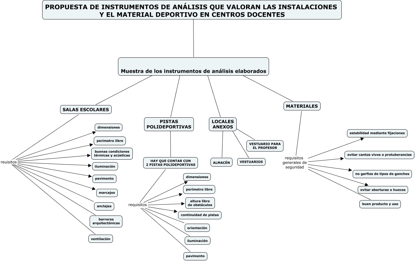 Este Cmap, tiene información relacionada con: PROPUESTAS DE INSTRUMENTOS, SALAS ESCOLARES reuisitos marcajes, LOCALES ANEXOS ???? VESTUARIOS, SALAS ESCOLARES reuisitos iluminación, MATERIALES requisitos generales de seguridad buen producto y uso, HAY QUE CONTAR CON 2 PISTAS POLIDEPORTIVAS requisitos iluminación, SALAS ESCOLARES reuisitos anclajes, SALAS ESCOLARES reuisitos dimensiones, SALAS ESCOLARES reuisitos ventilación, HAY QUE CONTAR CON 2 PISTAS POLIDEPORTIVAS requisitos orientación, HAY QUE CONTAR CON 2 PISTAS POLIDEPORTIVAS requisitos perímetro libre, PISTAS POLIDEPORTIVAS ???? HAY QUE CONTAR CON 2 PISTAS POLIDEPORTIVAS, Muestra de los instrumentos de análisis elaborados ???? SALAS ESCOLARES, Muestra de los instrumentos de análisis elaborados ???? PISTAS POLIDEPORTIVAS, MATERIALES requisitos generales de seguridad no garfios de tipos de ganchos, Muestra de los instrumentos de análisis elaborados ???? LOCALES ANEXOS, SALAS ESCOLARES reuisitos perímetro libre, MATERIALES requisitos generales de seguridad evitar cantos vivos o protuberancias, HAY QUE CONTAR CON 2 PISTAS POLIDEPORTIVAS requisitos continuidad de pistas, SALAS ESCOLARES reuisitos barreras arquitectónicas, SALAS ESCOLARES reuisitos buenas condiciones térmicas y acústicas