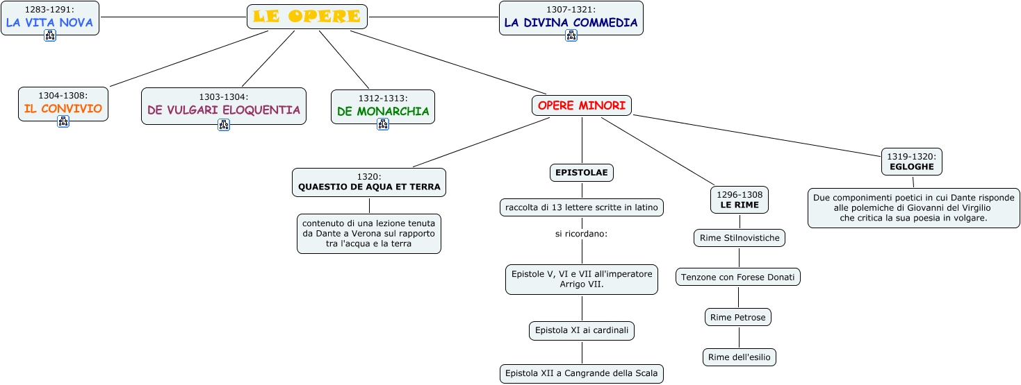Questa Cmap, creata con IHMC CmapTools, contiene informazioni relative a: Dante(le opere)-Ghirardi Chiara, Rime Stilnovistiche Tenzone con Forese Donati, LE OPERE 1312-1313: DE MONARCHIA, LE OPERE 1303-1304: DE VULGARI ELOQUENTIA, OPERE MINORI 1319-1320: EGLOGHE, LE OPERE 1307-1321: LA DIVINA COMMEDIA, 1296-1308 LE RIME Rime Stilnovistiche, OPERE MINORI 1296-1308 LE RIME, 1320: QUAESTIO DE AQUA ET TERRA contenuto di una lezione tenuta da Dante a Verona sul rapporto tra l'acqua e la terra, Rime Petrose Rime dell'esilio, LE OPERE 1283-1291: LA VITA NOVA, Tenzone con Forese Donati Rime Petrose, Epistole V, VI e VII all'imperatore Arrigo VII. Epistola XI ai cardinali, 1319-1320: EGLOGHE Due componimenti poetici in cui Dante risponde alle polemiche di Giovanni del Virgilio che critica la sua poesia in volgare., raccolta di 13 lettere scritte in latino si ricordano: Epistole V, VI e VII all'imperatore Arrigo VII., LE OPERE 1304-1308: IL CONVIVIO, LE OPERE OPERE MINORI, EPISTOLAE raccolta di 13 lettere scritte in latino, OPERE MINORI 1320: QUAESTIO DE AQUA ET TERRA, OPERE MINORI EPISTOLAE, Epistola XI ai cardinali Epistola XII a Cangrande della Scala