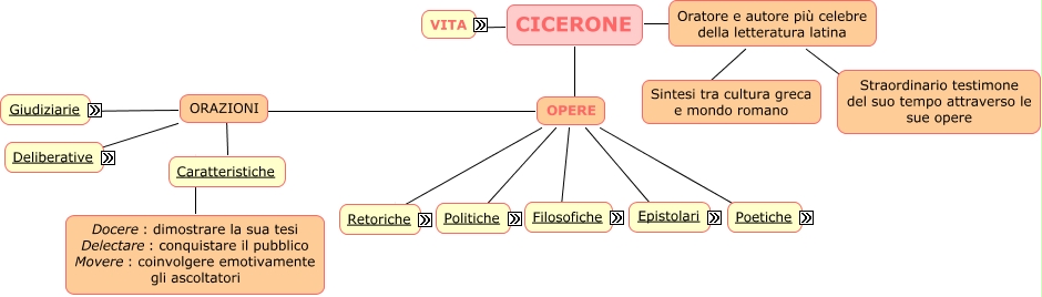 Questa Cmap, creata con IHMC CmapTools, contiene informazioni relative a: Cicerone - Ghilardi Roberta, 63 a.C. De lege agraria, Nel 63 a.C. viene nominato console Nello stesso anno affrontò la congiura di Catilina, che venne sconfitto nell'anno seguente con le orazioni Catilinariae, 54 a.C. De republica, 3 libri Libro I: viene definito l'"honestum", il bene morale, De officiis 3 libri, Nel 77 a.C ritorna in patria e inizia la sua carriera politica Nel 75 a.C. divenne questore, l'anno successivo divenne senatore, Vennero scritte negli ultimi anni della sua vita, tra il 45-44 a.C. RELIGIONE De natura deorum, Più tardi De officiis, Pro Sestio Scritta in difesa del tribuno della plebe Sestio accusato di aver organizzato bande armate contro Clodio., Nel 56 a.C. appoggiò il triumvirato. Dopo la morte di Cesare appoggiò Ottaviano e attaccò Antonio, 4 raccolte 2 libri di Epistulae ad Marcum Brutum, Tesi stoica III e IV libro, Nel 63 a.C. viene nominato console Conservatore, schierato con gli optimates contro i populares sostenuti da Cesare, 5 libri Libro V: per essere felici basta la virtù, ORAZIONI Caratteristiche, 70 a.C. 62 a.C., 5 libri Libro I: la morte non è un male, ma un bene, 55 a.C. De oratore, Orator Differenze tra lo stile degli oratori e lo stile degli storici, dei filosifi e dei poeti, OPERE Politiche