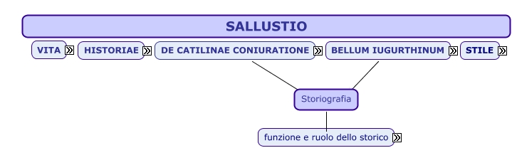 Questa Cmap, creata con IHMC CmapTools, contiene informazioni relative a: Sallustio - Ghilardi Roberta, Struttura di tipo annalistico divisa in 5 libri, Analisi psicologica Figure emblematiche Cesare, Cicerone optumus consul, Come nel "De Catilinae coniuratione" l'inizio della crisi coincide con la caduta di Cartagine Conflitti tra popolo e Senato, Monografia Excursus, dualismo dell'essere umano corpo è mortale e deve obbedire all'animo, Cesare rappresentano le posizioni politiche del tempo, Monografia Due momenti fondamentali, Storiografia Sallustio vuole sottolineare l'importanza dell'opera dello storico, i personaggi vengono presentati come ritratti Nemici rappresentanti della res publica, racconta la storia di Roma dalle sue origini fino alla congiura di Catilina Contrapposizione tra l'età moderna e i tempi antichi = modello perfetto, Analisi psicologica Catilina ha un'ampia centralità nell'opera, Monografia Tratta la guerra sostenuta dai Romani contro Giugurta, re della Numidia (111-105 a.C.), arcaismi fonetici e morfologici brevitas poche parole, ma ricche di significato, Analisi psicologica Complici Cicerone, Monografia Analisi psicologica, Nato nell'86 a.C. ad Amiterno Inizia la carriera politica, DE CATILINAE CONIURATIONE Storiografia, continua con la dittatura di Silla termina con la congiura di Catilina, dualismo dell'essere umano animo origine divina