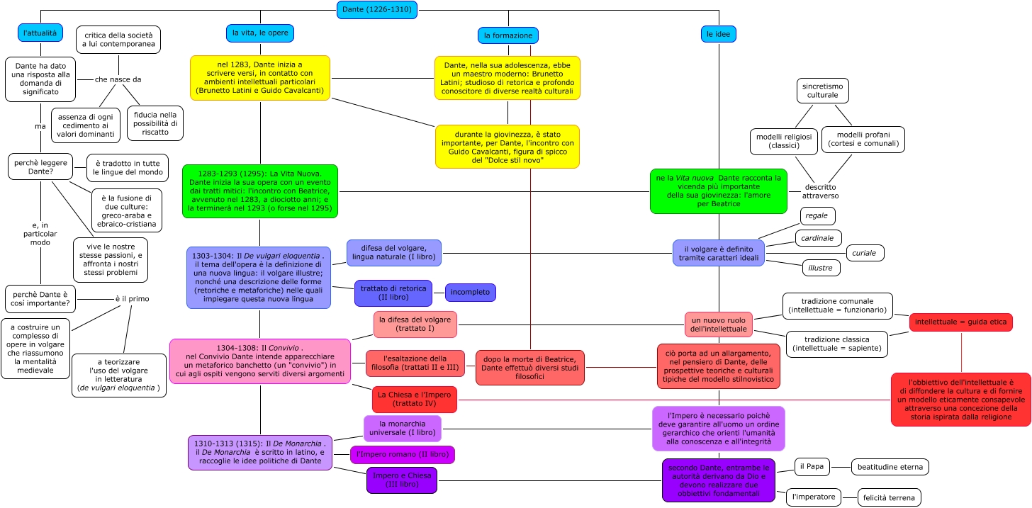 Questa Cmap, creata con IHMC CmapTools, contiene informazioni relative a: Gaia Mazzoleni-Dante, la monarchia universale (I libro) l'Impero è necessario poichè deve garantire all'uomo un ordine gerarchico che orienti l'umanità alla conoscenza e all'integrità, un nuovo ruolo dell'intellettuale tradizione classica (intellettuale = sapiente), l'attualità Dante ha dato una risposta alla domanda di significato, Dante (1226-1310) le idee, l'esaltazione della filosofia (trattati II e III) dopo la morte di Beatrice, Dante effettuò diversi studi filosofici, 1310-1313 (1315): Il De Monarchia. il De Monarchia è scritto in latino, e raccoglie le idee politiche di Dante la monarchia universale (I libro), le idee ne la Vita nuova Dante racconta la vicenda più importante della sua giovinezza: l'amore per Beatrice, le idee un nuovo ruolo dell'intellettuale, Impero e Chiesa (III libro) secondo Dante, entrambe le autorità derivano da Dio e devono realizzare due obbiettivi fondamentali, 1303-1304: Il De vulgari eloquentia. il tema dell'opera è la definizione di una nuova lingua: il volgare illustre; nonché una descrizione delle forme (retoriche e metaforiche) nelle quali impiegare questa nuova lingua trattato di retorica (II libro), 1304-1308: Il Convivio. nel Convivio Dante intende apparecchiare un metaforico banchetto (un "convivio") in cui agli ospiti vengono serviti diversi argomenti 1310-1313 (1315): Il De Monarchia. il De Monarchia è scritto in latino, e raccoglie le idee politiche di Dante, nel 1283, Dante inizia a scrivere versi, in contatto con ambienti intellettuali particolari (Brunetto Latini e Guido Cavalcanti) 1283-1293 (1295): La Vita Nuova. Dante inizia la sua opera con un evento dai tratti mitici: l'incontro con Beatrice, avvenuto nel 1283, a diociotto anni; e la terminerà nel 1293 (o forse nel 1295), il Papa beatitudine eterna, dopo la morte di Beatrice, Dante effettuò diversi studi filosofici ciò porta ad un allargamento, nel pensiero di Dante, delle prospettive teoriche e culturali tipiche del modello stilnovistico, Dante ha dato una risposta alla domanda di significato che nasce da critica della società a lui contemporanea, 1304-1308: Il Convivio. nel Convivio Dante intende apparecchiare un metaforico banchetto (un "convivio") in cui agli ospiti vengono serviti diversi argomenti l'esaltazione della filosofia (trattati II e III), La Chiesa e l'Impero (trattato IV) l'obbiettivo dell'intellettuale è di diffondere la cultura e di fornire un modello eticamente consapevole attraverso una concezione della storia ispirata dalla religione, l'Impero è necessario poichè deve garantire all'uomo un ordine gerarchico che orienti l'umanità alla conoscenza e all'integrità secondo Dante, entrambe le autorità derivano da Dio e devono realizzare due obbiettivi fondamentali, la formazione dopo la morte di Beatrice, Dante effettuò diversi studi filosofici, perchè Dante è così importante? è il primo a teorizzare l'uso del volgare in letteratura (de vulgari eloquentia)