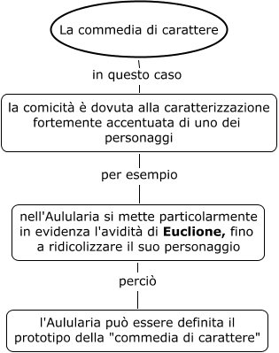 Questa Cmap, creata con IHMC CmapTools, contiene informazioni relative a: La commedia di carattere- Miriana, La commedia di carattere in questo caso la comicità è dovuta alla caratterizzazione fortemente accentuata di uno dei personaggi, nell'Aulularia si mette particolarmente in evidenza l'avidità di Euclione, fino a ridicolizzare il suo personaggio perciò l'Aulularia può essere definita il prototipo della "commedia di carattere", la comicità è dovuta alla caratterizzazione fortemente accentuata di uno dei personaggi per esempio nell'Aulularia si mette particolarmente in evidenza l'avidità di Euclione, fino a ridicolizzare il suo personaggio