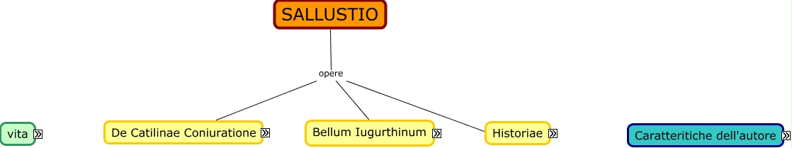 Questa Cmap, creata con IHMC CmapTools, contiene informazioni relative a: Pozzi-Sallustio.cmap, SALLUSTIO opere De Catilinae Coniuratione, All'interno delle opere di Sallustio si possono riscontrare alcune particolarità Fondamentali sono per Sallustio, Non esita a criticarli se l'evento lo richiede mostra Imparzialità nell'esposizione degli eventi, Il Bellum Iugurthinum è la seconda opera di Sallustio che fu Scritta attorno al 40 a.C., Egli si sposa con l'ideale dei populares tuttavia Non esita a criticarli se l'evento lo richiede, Fondamentali sono per Sallustio due aspetti Variatio, Il Bellum Iugurthinum è la seconda opera di Sallustio descrive la guerra dei romani contro Giugurta Riprende il tema della prima opera ossia la corruzione dei costumi, Historiae in questa opera Sallustio mostra un certo pessimismo riguardo la situazione romana, SALLUSTIO opere Historiae, All'interno delle opere di Sallustio si possono riscontrare alcune particolarità Ha uno stile ricercato e difficile, Gaio Sallustio Crispo nasce nell'86 a.C. da uomo novus entra in politica,ma viene espulso dal senato nel 50 a.C., All'interno delle opere di Sallustio si possono riscontrare alcune particolarità Imparzialità nell'esposizione degli eventi, Riprende il tema della prima opera ossia la corruzione dei costumi identificata con caduta di Cartagine, nel 44 viene rimosso dall'incarico per concussione perciò si dedica alla scrittura sino alla morte avvenuta nel 35 a.C., entra in politica,ma viene espulso dal senato nel 50 a.C. successivamente Segue Cesare in Gallia, Mancanza di concordia tra Senato e popolo colpa della caduta di Cartagine, Segue Cesare in Gallia e Viene reintegrato nel senato nel 50 a.C., Annalistica esse Narrano dal 78 all'67 a.C., Dopo la caduta di Cartagine che causò Degenerazione dei costumi e della morale, Denunciare la corruzione e il malcostume romano tramite La narrazione della congiura di Catilina