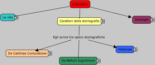 Questa Cmap, creata con IHMC CmapTools, contiene informazioni relative a: Sallustio - Francesca Capelli, Non una monografia, ma un'opera che vuole raccontare la storia di Roma, anche se si riallaccia all'opera di Lucio Cornelio Sinna, che arrivava fino al 78 a.C. quindi La storia va dal 78 al 67 a.C., Sallustio è uno storiografo. Secondo lui La storia è importante, specialmente nella società romana, dove molti partecipano alla vita politica, divisa in due parti da un excursus cioè la seconda narra le guerre a Roma e in Etruria, De Bellum Iugurthinum è Ricco di ritratti dei personaggi più importanti, Il gran numero di arcaismi che riprendono Brevitas: poche parole tanti concetti uniti insieme, Diventa governatore dell'Africa Nova nel 46 a.C. Siccome torna a Roma ricchissimo Viene accusato di concussione. Viene salvato dal processo ancora grazie a Cesare, Nel 50 a.C. viene espulso dal Senato per probabile vita scostumata Viene fatto reintegrare da Cesare Diventa governatore dell'Africa Nova nel 46 a.C., Caratteri della storiografia Egli scrive tre opere storiografiche De Bellum Iugurthinum, De Bellum Iugurthinum è Diviso ancora in due parti come il De Catilinae Coniuratione da un excursus sulla decadenza della res publica, Historiae è Non una monografia, ma un'opera che vuole raccontare la storia di Roma, anche se si riallaccia all'opera di Lucio Cornelio Sinna, che arrivava fino al 78 a.C., Nell'86 a.C. a Amiterno, in Sabina. Appartiene a una famiglia plebea agiata A Roma Nel 50 a.C. viene espulso dal Senato per probabile vita scostumata, De Bellum Iugurthinum è Una monografia che parla della guerra in Numidia contro Giugurta, dal 111 al 105 a.C., La storia è importante, specialmente nella società romana, dove molti partecipano alla vita politica Perchè L'animo (guidato dalla divinità) porta a condurre le opere più grandi, descritte dallo storico, Historiae è Andata perduta, tranne alcuni frammenti, Sallustio nasce Nell'86 a.C. a Amiterno, in Sabina. Appartiene a una famiglia plebea agiata, De Catilinae Coniuratione è introdotto da un excursus in cui si rievoca la storia di Roma, ricordando più la morale che gli eventi storici, Ricco di ritratti dei personaggi più importanti tra cui il ritratto di Mario, per cui Sallustio ha simpatie, in quanto egli è uno dei populares, Sallustio vuole raccontare la storia di Roma attraverso episodi memorabili. La congiura lo è perchè è stato un grande pericolo per la repubblica anche la narrazione è Selettiva, seppure ricca di elementi drammatici, Caratteri della storiografia Egli scrive tre opere storiografiche Historiae, Sceglie come modelli stilistici Catone e Tucidide, che danno all'opera storica una forma letteraria da cui prende Il gran numero di arcaismi