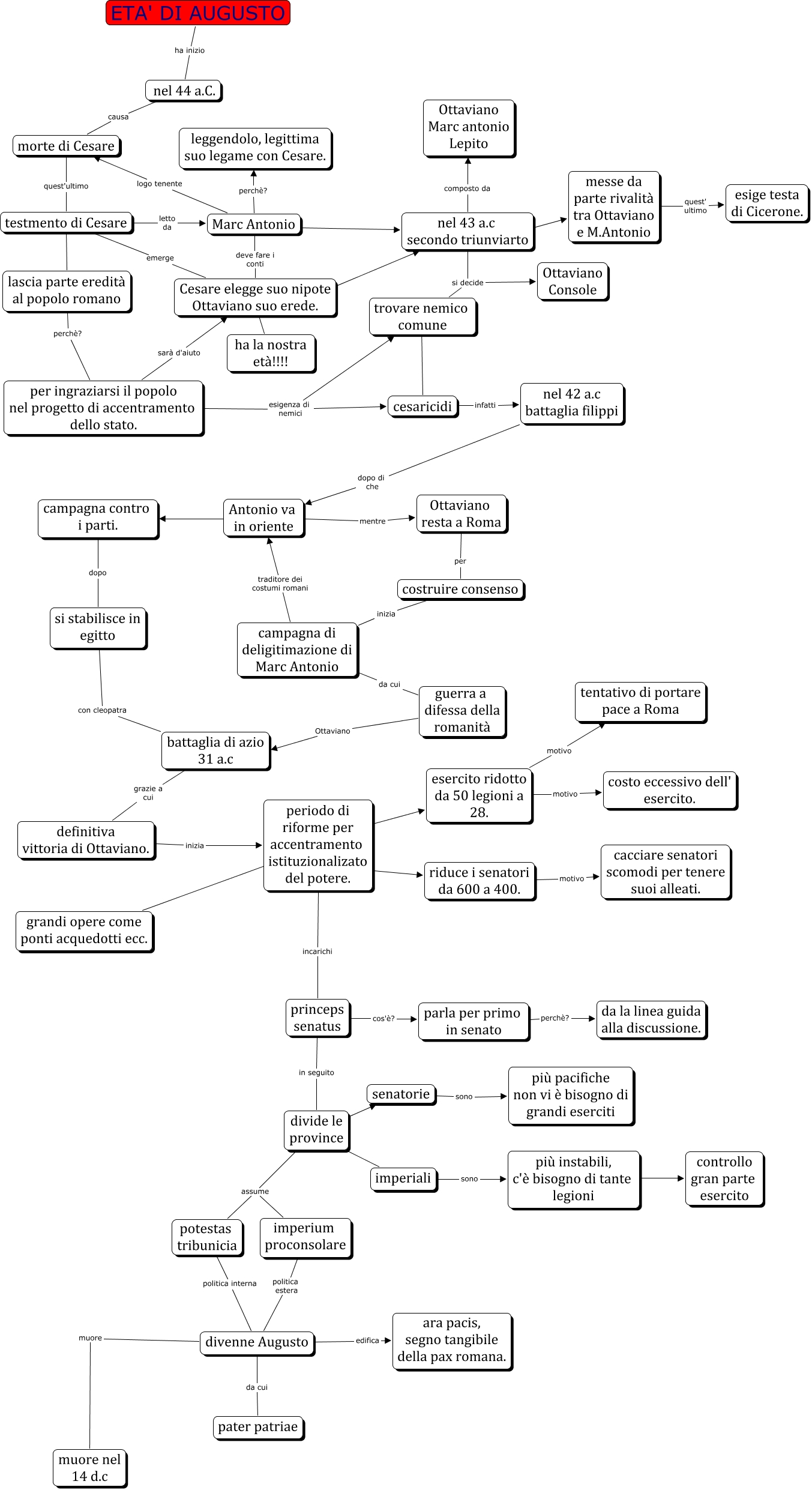 Questa Cmap, creata con IHMC CmapTools, contiene informazioni relative a: età augutea, princeps senatus cos'è? parla per primo in senato, per ingraziarsi il popolo nel progetto di accentramento dello stato. esigenza di nemici cesaricidi, Ottaviano resta a Roma per costruire consenso, si stabilisce in egitto con cleopatra battaglia di azio 31 a.c, parla per primo in senato perchè? da la linea guida alla discussione., esercito ridotto da 50 legioni a 28. motivo costo eccessivo dell' esercito., divide le province assume imperium proconsolare, princeps senatus in seguito divide le province, costruire consenso inizia campagna di deligitimazione di Marc Antonio, Cesare elegge suo nipote Ottaviano suo erede. ???? nel 43 a.c secondo triunviarto, nel 43 a.c secondo triunviarto ???? messe da parte rivalità tra Ottaviano e M.Antonio, senatorie sono più pacifiche non vi è bisogno di grandi eserciti, Marc Antonio perchè? leggendolo, legittima suo legame con Cesare., nel 42 a.c battaglia filippi dopo di che Antonio va in oriente, divide le province assume potestas tribunicia, più instabili, c'è bisogno di tante legioni ???? controllo gran parte esercito, nel 43 a.c secondo triunviarto composto da Ottaviano Marc antonio Lepito, per ingraziarsi il popolo nel progetto di accentramento dello stato. sarà d'aiuto Cesare elegge suo nipote Ottaviano suo erede., ETA' DI AUGUSTO ha inizio nel 44 a.C., campagna contro i parti. dopo si stabilisce in egitto