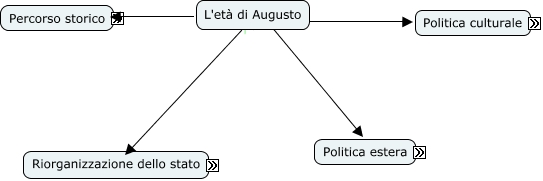 Questa Cmap, creata con IHMC CmapTools, contiene informazioni relative a: L'età di Augusto - Carminati, Ottaviano in occidente Campagna contro Antonio, Si prende il consenso del popolo leggendo il testamento pubblicamente, convinto di controllare il giovane Ottaviano Avanza pretese sulle Gallie, Collaborazione degli intellettuali tuttavia La poesia augustea non è solo politica, Nuove prefetture ordine senatorio Praefectus Urbi polizia a Roma, Legioni da 50 a 28 Limita il peso politico, Si lega a Cleopatra X 31- Battaglia di Azio, vince Ottaviano, Riorganizzazione dello Stato riforme Sistema monetario anche per propaganda, Roma capitale urbanistica Campo Marzio ricco di costruzioni, Politica culturale Collaborazione degli intellettuali, Roma capitale lavori idraulici Nuovi acquedotti, restauro dei vecchi, 500 fontane e 170 bagni, Vince Ottaviano Si fa dichiarare console illegalmente, 40- i triumviri si dividono lo stato a Brindisi Ottaviano in occidente, L'età di Augusto Percorso storico, Riorganizzazione dello Stato in campo religioso Restaura templi, Strage di Teutoburgo Confine dell'Impero al Reno, Collaborazione degli intellettuali tuttavia Gli intellettuali mai strumenti passivi del regime, Collaborazione degli intellettuali attraverso anche Mecenate (70-8 a. C:), Riorganizzazione dello Stato assume i titoli di 23- Imperium proconsolare maius et infinitum, Asinio Pollione Patrono di Virgilio, Morto Cesare, 2 contendenti Antonio, erede militare
