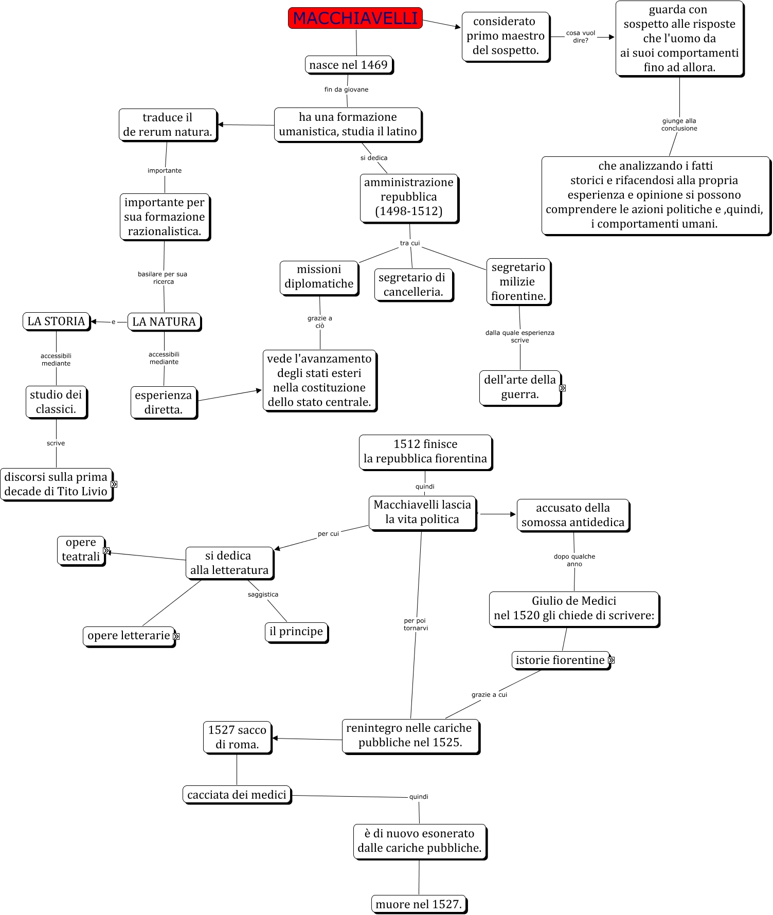 Questa Cmap, creata con IHMC CmapTools, contiene informazioni relative a: Macchiavelli, teoria anaciclosi Polibio democrazia anarchia, offre sullo sfondo la sua opinione sulla chiesa e sulla realtà Italiana. afferma illarità contenuta da desolante contesto in cui si sviluppa la storia., LA NATURA accessibili mediante esperienza diretta., l'analisi storica come base per comprendere il presente da cui principato, amministrazione repubblica (1498-1512) tra cui segretario milizie fiorentine., nel personaggio di timoteo (frate) emerge il legame fra denaro e chiesa, ???? accusa del materialista MAcchiavelli., non semplice esposizione di fatti storici, ? ben si vero e proprio saggio in cui espone le proprie opinioni, DISCORSI SULLA NOSTRA LINGUA. sostiene che vada utilizzato il fiorentino corrente, si dedica alla letteratura opere letterarie, l'analisi storica come base per comprendere il presente quale forma di governo? monarcchia limitata, l'analisi storica come base per comprendere il presente stati Italiani esercito mercanario, "Istorie fiorentine" scritto nel 1520-1525, Macchiavelli lascia la vita politica ???? accusato della somossa antidedica, nasce nel 1469 fin da giovane ha una formazione umanistica, studia il latino, Macchiavelli lascia la vita politica per cui si dedica alla letteratura, ben si vero e proprio saggio in cui espone le proprie opinioni ???? giunge alle stesse conclusione dei discorsi, repubblica necessaria mantenimento dello stato, dialogo modello platonico, 1527 sacco di roma. ???? cacciata dei medici, la virtù di molti permette una divisione dei poteri. ???? preferita da Macchiaveli