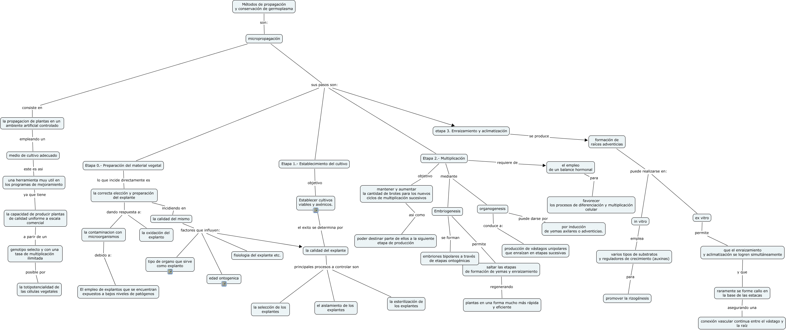 Este Cmap, tiene información relacionada con: manuel unidad 6 tesh, micropropagación sus pasos son: Etapa 2.- Multiplicación, la calidad del mismo factores que influyen: la calidad del explante, la calidad del mismo factores que influyen: edad ontogenica, la correcta elección y preparación del explante dando respuesta a: la oxidación del explanto, la capacidad de producir plantas de calidad uniforme a escala comercial a parir de un genotipo selecto y con una tasa de multiplicación ilimitada, Métodos de propagación y conservación de germoplasma son: micropropagación, Etapa 1.- Establecimiento del cultivo objetivo Establecer cultivos viables y axénicos., Embriogenesis permite saltar las etapas de formación de yemas y enraizamiento, medio de cultivo adecuado este es asi una herramienta muy util en los programas de mejoramiento, genotipo selecto y con una tasa de multiplicación ilimitada posible por la totipotencialidad de las células vegetales, formación de raíces adventicias puede realizarse en: in vitro, la calidad del explante principales procesos a controlar son la selección de los explantes, la calidad del explante principales procesos a controlar son el aislamiento de los explantes, mantener y aumentar la cantidad de brotes para los nuevos ciclos de multiplicación sucesivos asi como poder destinar parte de ellos a la siguiente etapa de producción, saltar las etapas de formación de yemas y enraizamiento regenerando plantas en una forma mucho más rápida y eficiente, ex vitro permite que el enraizamiento y aclimatización se logren simultáneamente, la propagacion de plantas en un ambiente artificial controlado empleando un medio de cultivo adecuado, in vitro emplea varios tipos de substratos y reguladores de crecimiento (auxinas), raramente se forme callo en la base de las estacas asegurando una conexión vascular continua entre el vástago y la raíz, la correcta elección y preparación del explante dando respuesta a: la contaminacion con microorganismos