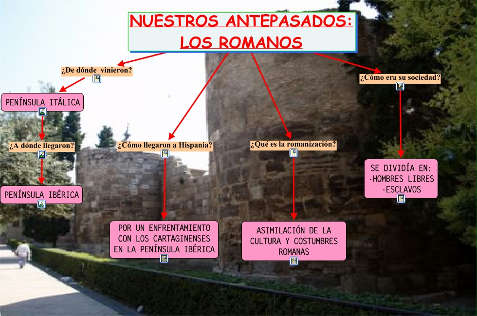 Este Cmap, tiene información relacionada con: NUESTROS ANTEPASADOS_ROMANOS, PENÍNSULA ITÁLICA ¿A dónde llegaron? PENÍNSULA IBÉRICA, NUESTROS ANTEPASADOS: LOS ROMANOS ¿De dónde vinieron? PENÍNSULA ITÁLICA, NUESTROS ANTEPASADOS: LOS ROMANOS ¿Cómo llegaron a Hispania? POR UN ENFRENTAMIENTO CON LOS CARTAGINENSES EN LA PENÍNSULA IBÉRICA, NUESTROS ANTEPASADOS: LOS ROMANOS ¿Qué es la romanización? ASIMILACIÓN DE LA CULTURA Y COSTUMBRES ROMANAS, NUESTROS ANTEPASADOS: LOS ROMANOS ¿Cómo era su sociedad? SE DIVIDÍA EN: -HOMBRES LIBRES -ESCLAVOS
