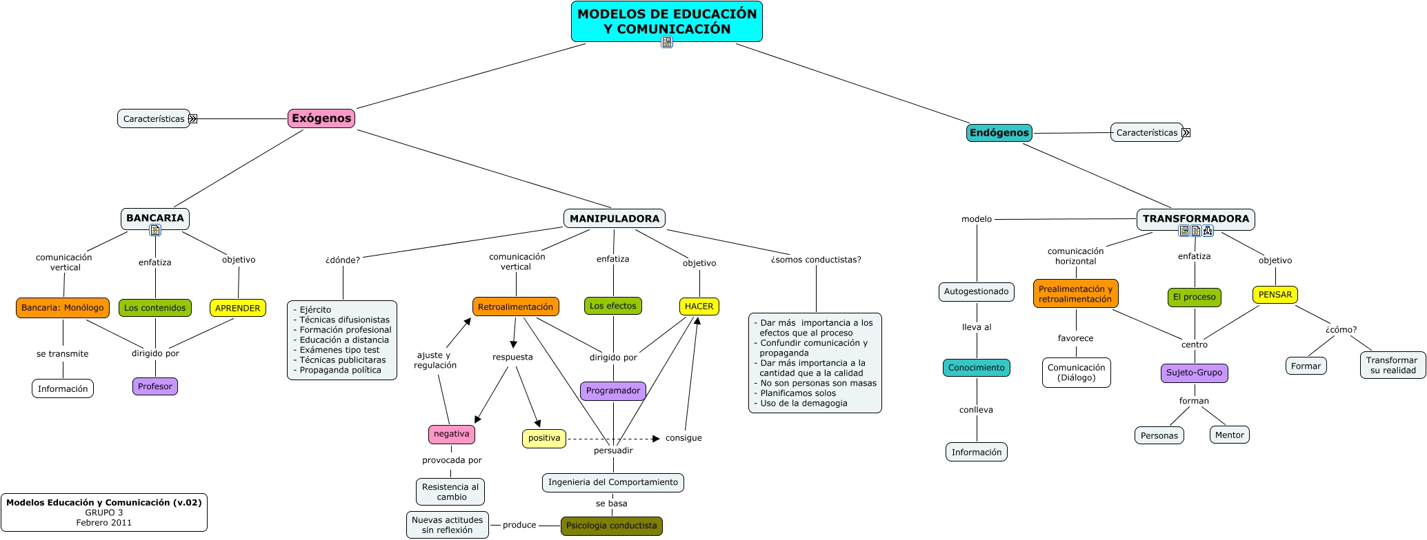Este Cmap, tiene información relacionada con: Modelos Educación y Comunicación - M. Kaplún, Programador persuadir Ingenieria del Comportamiento, Conocimiento conlleva Información, Retroalimentación respuesta negativa, Bancaria: Monólogo se transmite Información, Prealimentación y retroalimentación centro Sujeto-Grupo, Parte del destinatario Endógenos TRANSFORMADORA, MANIPULADORA comunicación vertical Retroalimentación, TRANSFORMADORA enfatiza El proceso, MANIPULADORA ¿dónde? - Ejército - Técnicas difusionistas - Formación profesional - Educación a distancia - Exámenes tipo test - Técnicas publicitaras - Propaganda política, HACER dirigido por Programador, positiva consigue HACER, Profesor dirigido por APRENDER, Los contenidos dirigido por Bancaria: Monólogo, El proceso centro Sujeto-Grupo, Los efectos dirigido por Programador, BANCARIA enfatiza Los contenidos, Retroalimentación respuesta positiva, - Bidireccional. - Permanente. - Participativa. - Problematizadora. - Personalizante. - Interpelante. se caracteriza por ser Comunicación eficaz, MODELOS DE EDUCACIÓN Y COMUNICACIÓN Exógenos BANCARIA, HACER persuadir Ingenieria del Comportamiento