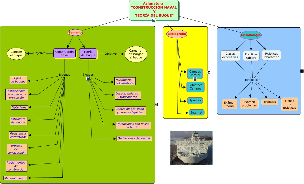 Este Cmap, tiene información relacionada con: Tarea no presencial 2, Prácticas laboratorio Evaluación Fichas de prácticas, Asignatura: "CONSTRUCCIÓN NAVAL Y TEORÍA DEL BUQUE" Temario Teoría del buque, Clases expositivas Evaluación Exámen teoría, Teoría del buque Bioques Oscilaciones del buque, Teoría del buque Bioques Desplazamiento y francobordo, Prácticas tablero Evaluación Exámen problemas, Prácticas laboratorio Evaluación Exámen problemas, Asignatura: "CONSTRUCCIÓN NAVAL Y TEORÍA DEL BUQUE" Metodología Clases expositivas, Clases expositivas Evaluación Exámen problemas, Prácticas laboratorio Evaluación Trabajos, Construcción Naval Bloques Reglamentos de construcción, Asignatura: "CONSTRUCCIÓN NAVAL Y TEORÍA DEL BUQUE" Metodología Prácticas laboratorio, Teoría del buque Bioques Operaciones con pesos a bordo, Asignatura: "CONSTRUCCIÓN NAVAL Y TEORÍA DEL BUQUE" Metodología Prácticas tablero, Clases expositivas Evaluación Trabajos, Teoría del buque Objetivo Cargar y descargar el buque, Asignatura: "CONSTRUCCIÓN NAVAL Y TEORÍA DEL BUQUE" Bilbiografía Bilbioteca Campus, Prácticas tablero Evaluación Fichas de prácticas, Clases expositivas Evaluación Fichas de prácticas, Construcción Naval Bloques Mantenimiento
