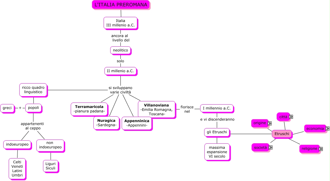 Questa Cmap, creata con IHMC CmapTools, contiene informazioni relative a: L'Italia preromana e gli Etruschi_Tassis Elena, commercio vite olivo cereali, repubblica potere a magistrati, ecomonia basata su agricoltura, II millenio a.C. si sviluppano varie civiltà Villanoviana -Emilia Romagna, Toscana-, si alleano con i Cartaginesi ma sconfitti nel 540 ad Alalia, commercio dimestichezza sul mare, ricco quadro linguistico popoli, repubblica di tipo oligarchico, Etruschi religione, agricoltura vite olivo cereali, città autonome che si riunificano in leghe a carettere religioso, origine incerta, II millenio a.C. si sviluppano varie civiltà Appenninica -Appennini-, greci ma scrittura non decifrata, agricoltura opere di bonifica, Etruschi economia, L'ITALIA PREROMANA Italia III millenio a.C., Italia III millenio a.C. ancora al livello del neolitico, I millennio a.C. e vi discenderanno gli Etruschi, dimestichezza sul mare x contrastare l'avanzata greca si alleano con i Cartaginesi