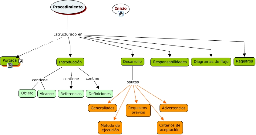 Este Cmap, tiene información relacionada con: 2.- Procedimientos, Procedimiento Estructurado en Indice, Introducción contine Definiciones, Desarrollo pautas Requisitos previos, Desarrollo pautas Método de ejecución, Desarrollo pautas Advertencias, Procedimiento Estructurado en Identificación, Procedimiento Estructurado en Responsabilidades, Introducción contiene Alcance, Desarrollo pautas Generaliades, Procedimiento Estructurado en Introducción, Procedimiento Estructurado en Registros, Procedimiento Estructurado en Nombre, Procedimiento Estructurado en Diagramas de flujo, Procedimiento Estructurado en Tabla revisiones, Procedimiento Estructurado en Cabecera, Introducción contiene Referencias, Procedimiento Estructurado en Desarrollo, Introducción contiene Objeto, Desarrollo pautas Criterios de aceptación
